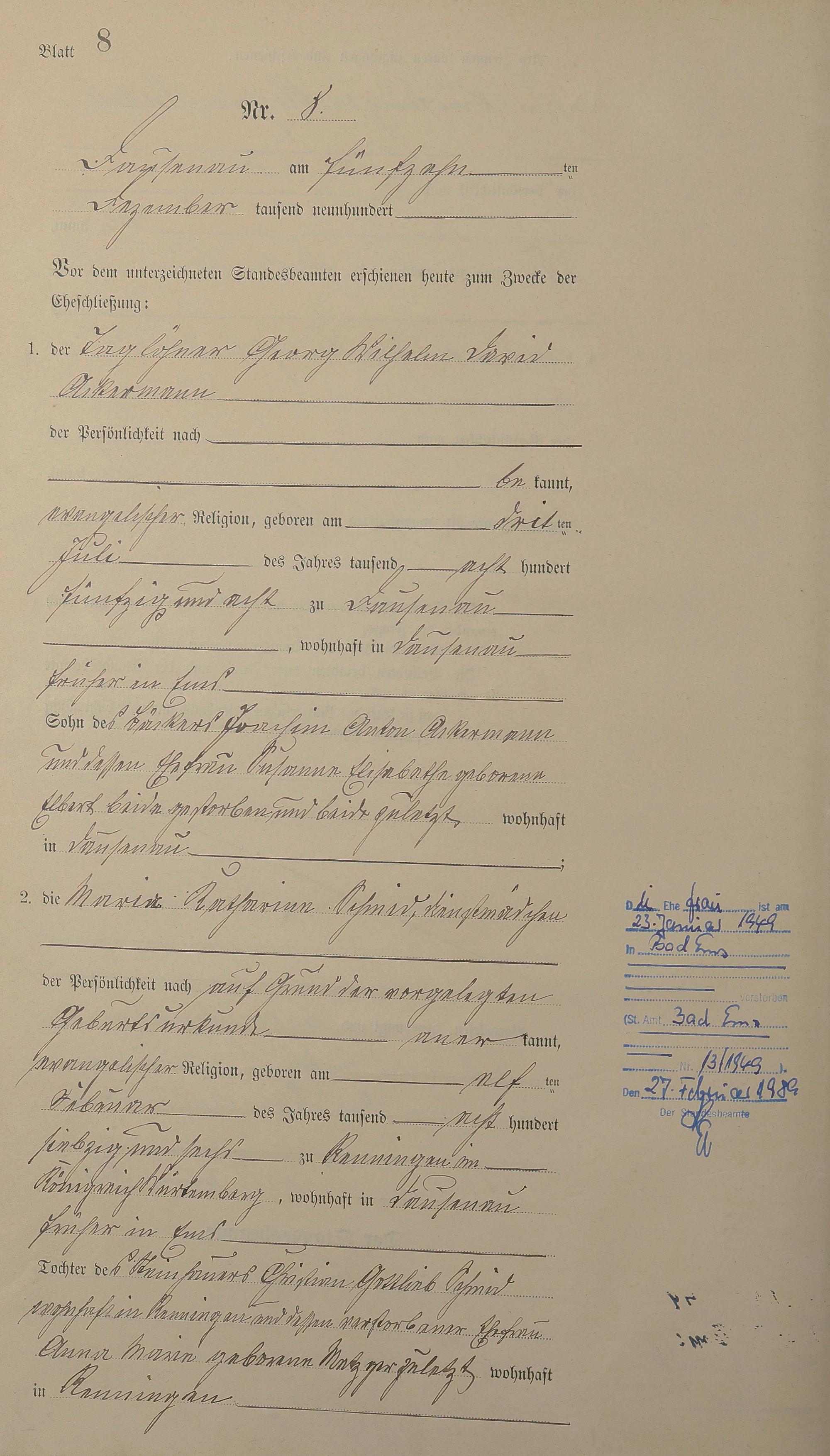 Heiratsregister 1900