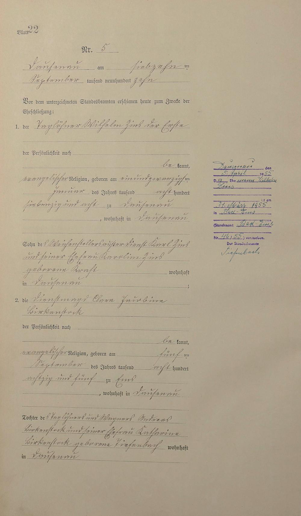 Heiratsregister 1910