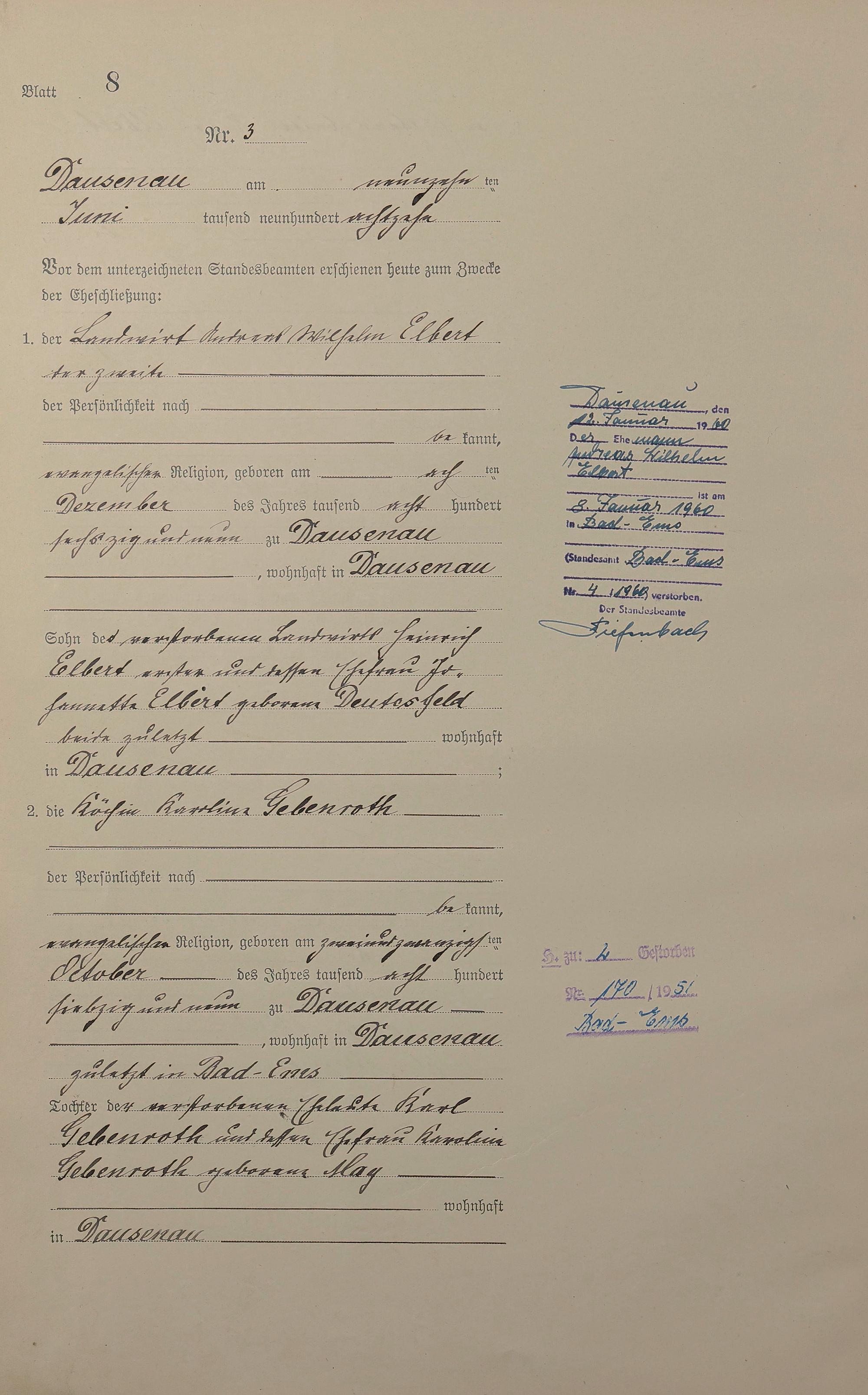 Heiratsregister 1918