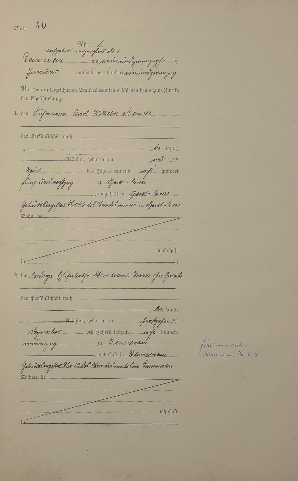 Heiratsregister 1921