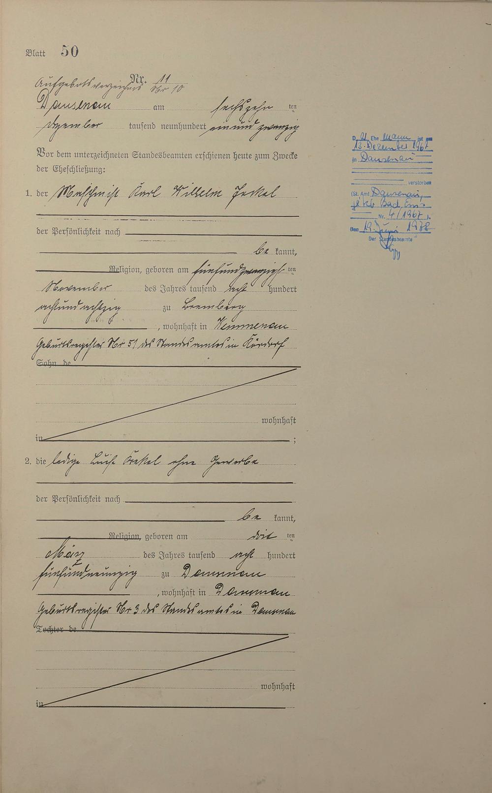 Heiratsregister 1921