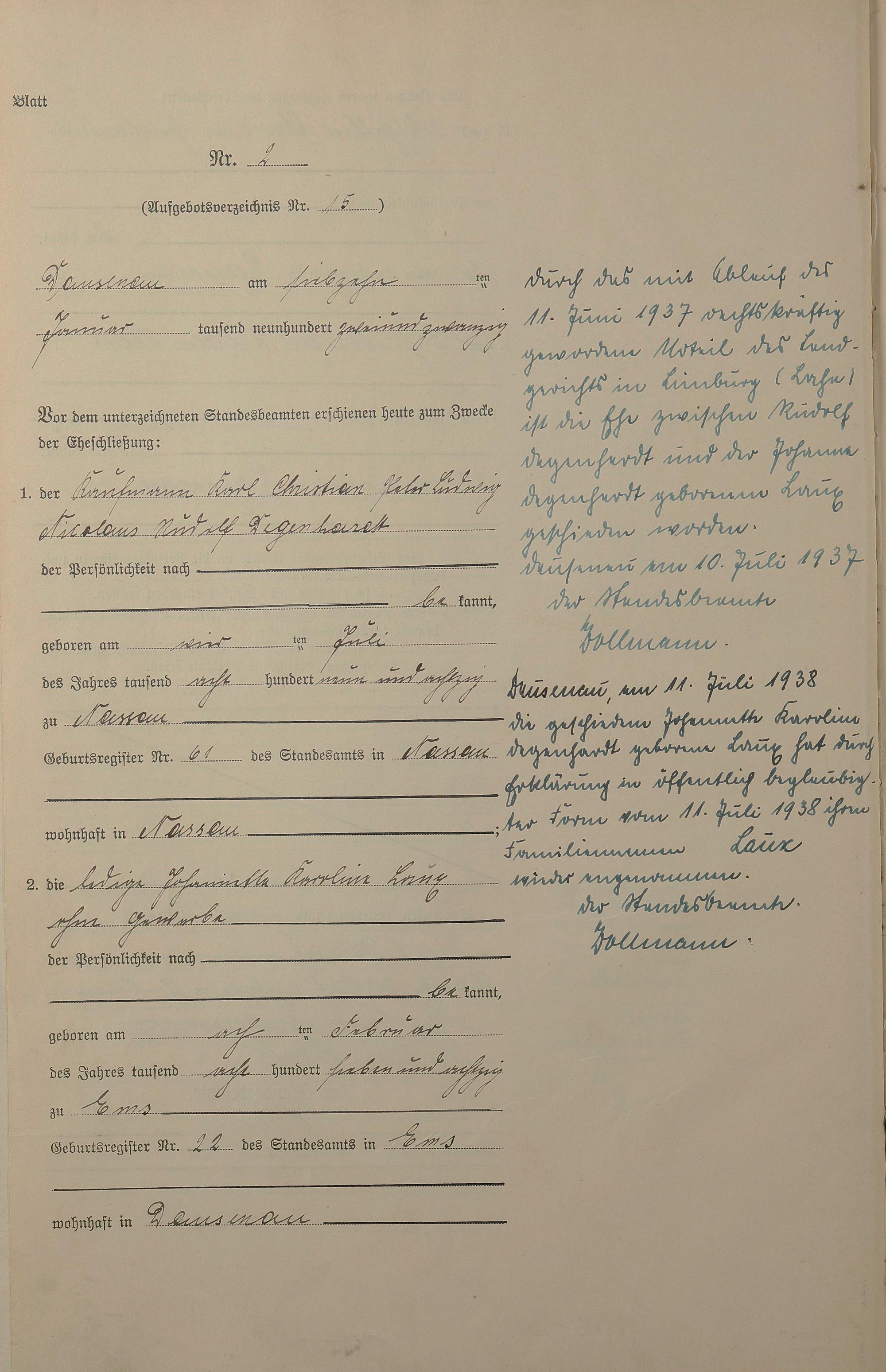 Heiratsregister 1922