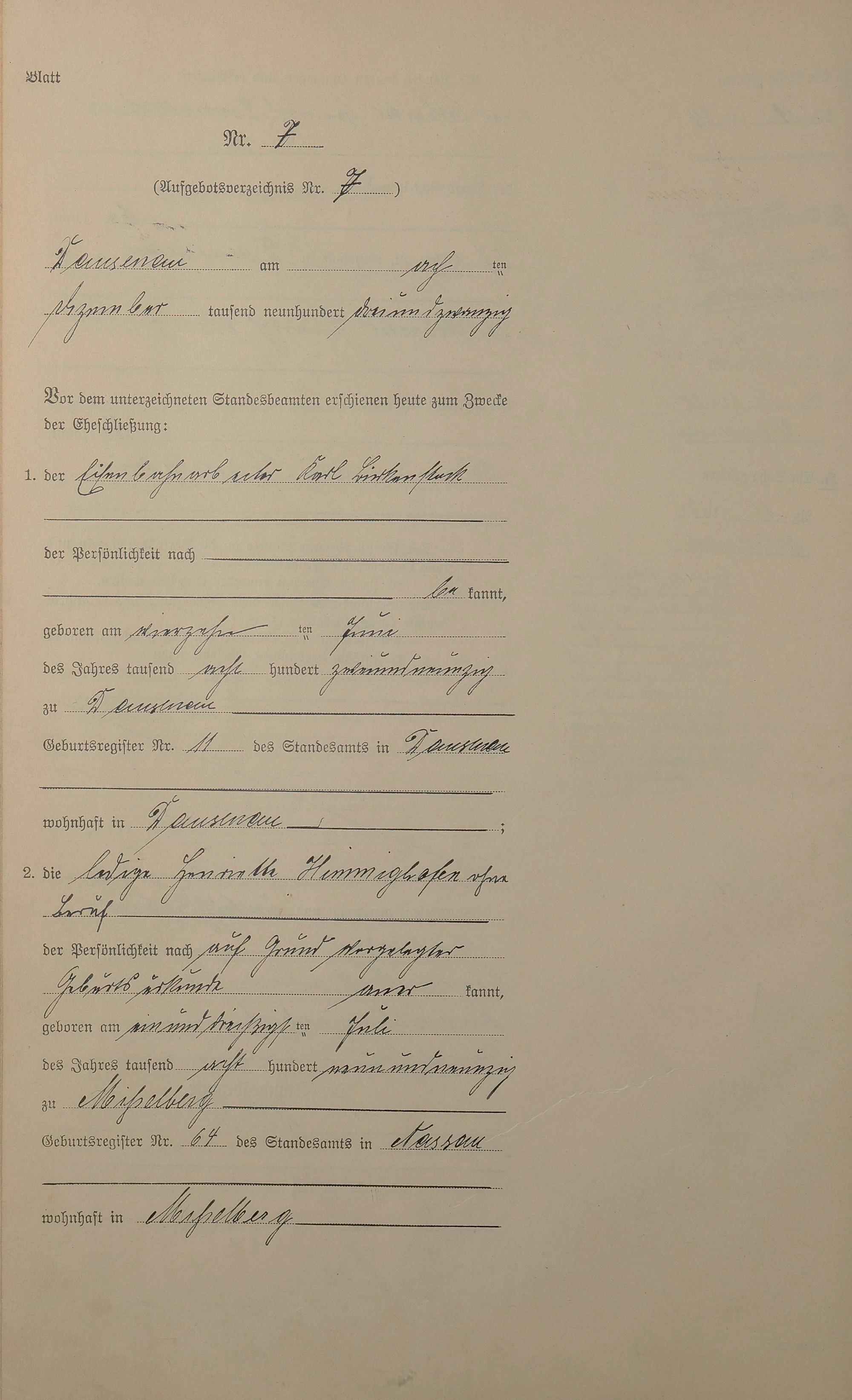 Heiratsregister 1923