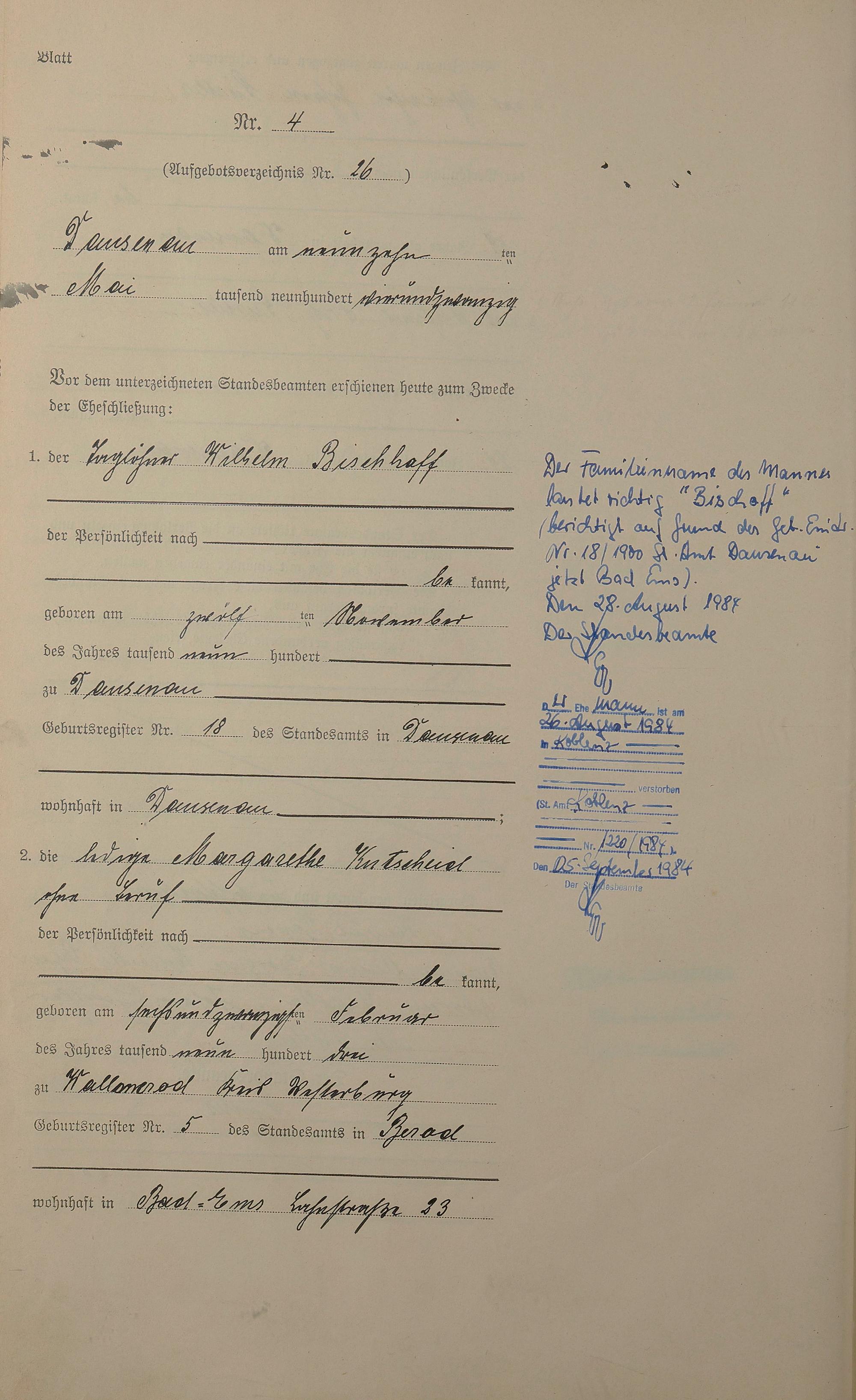 Heiratsregister 1924