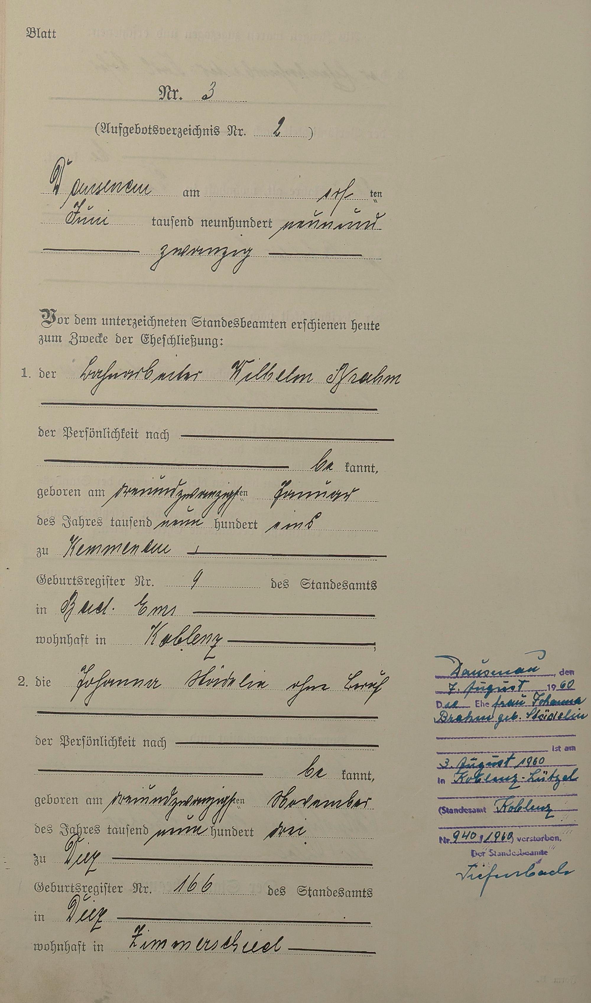 Heiratsregister 1929