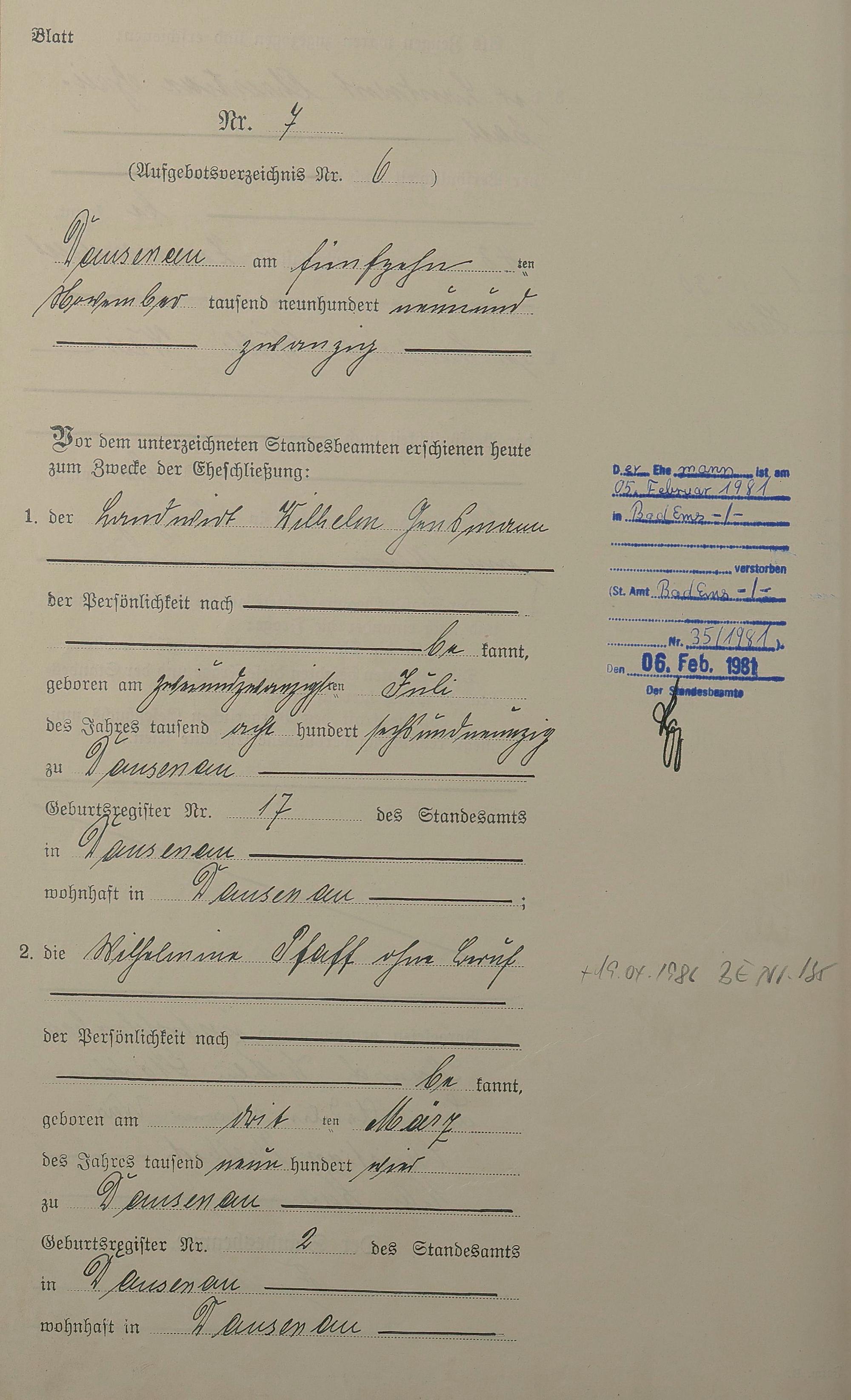 2006/13: Heiratsregister 1929