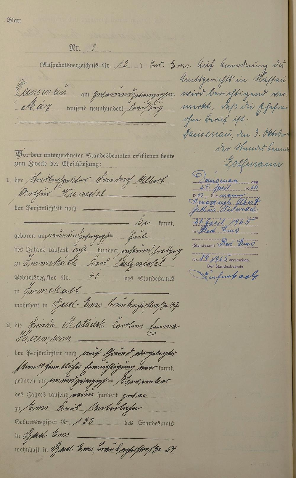 Heiratsregister 1930