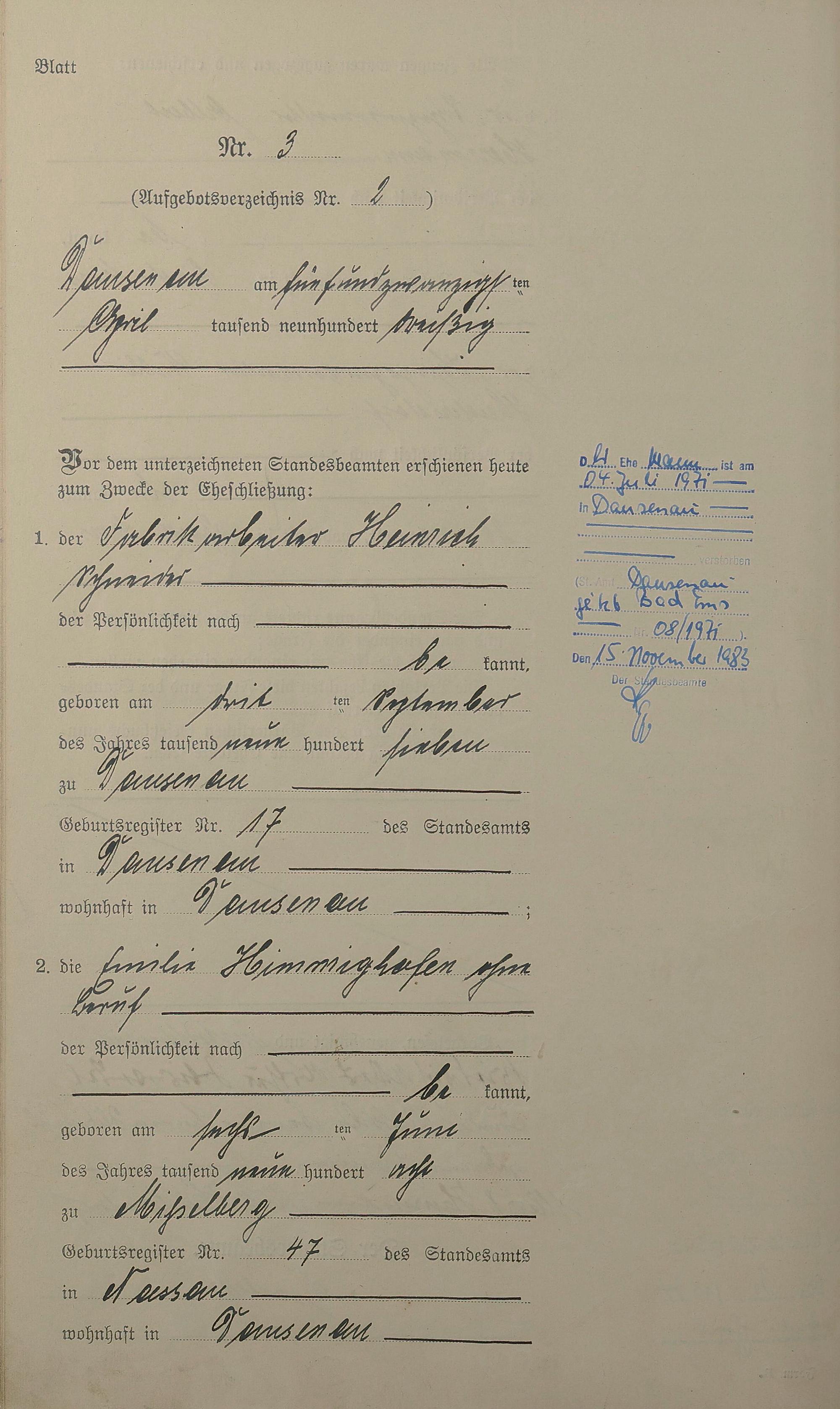 Heiratsregister 1930