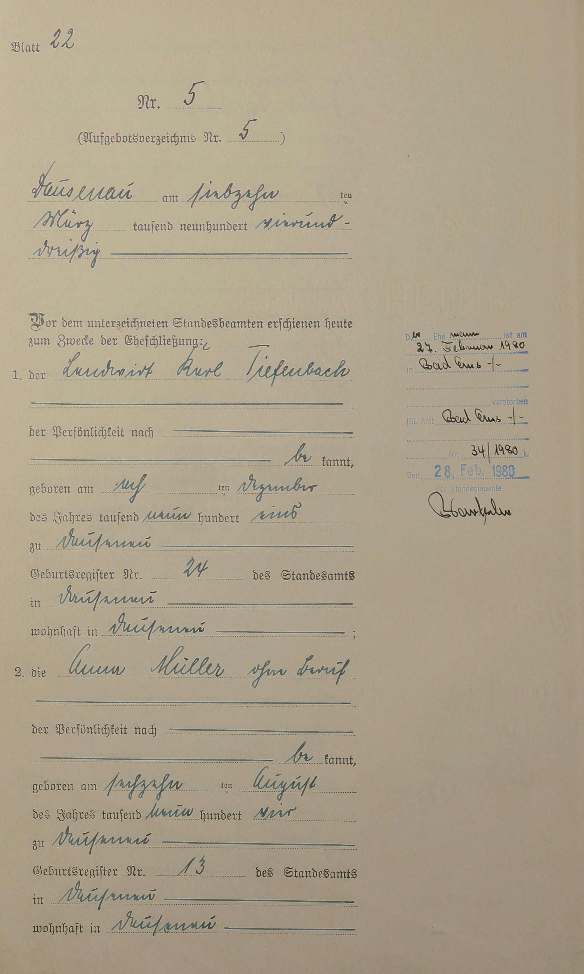 Heiratsregister 1934