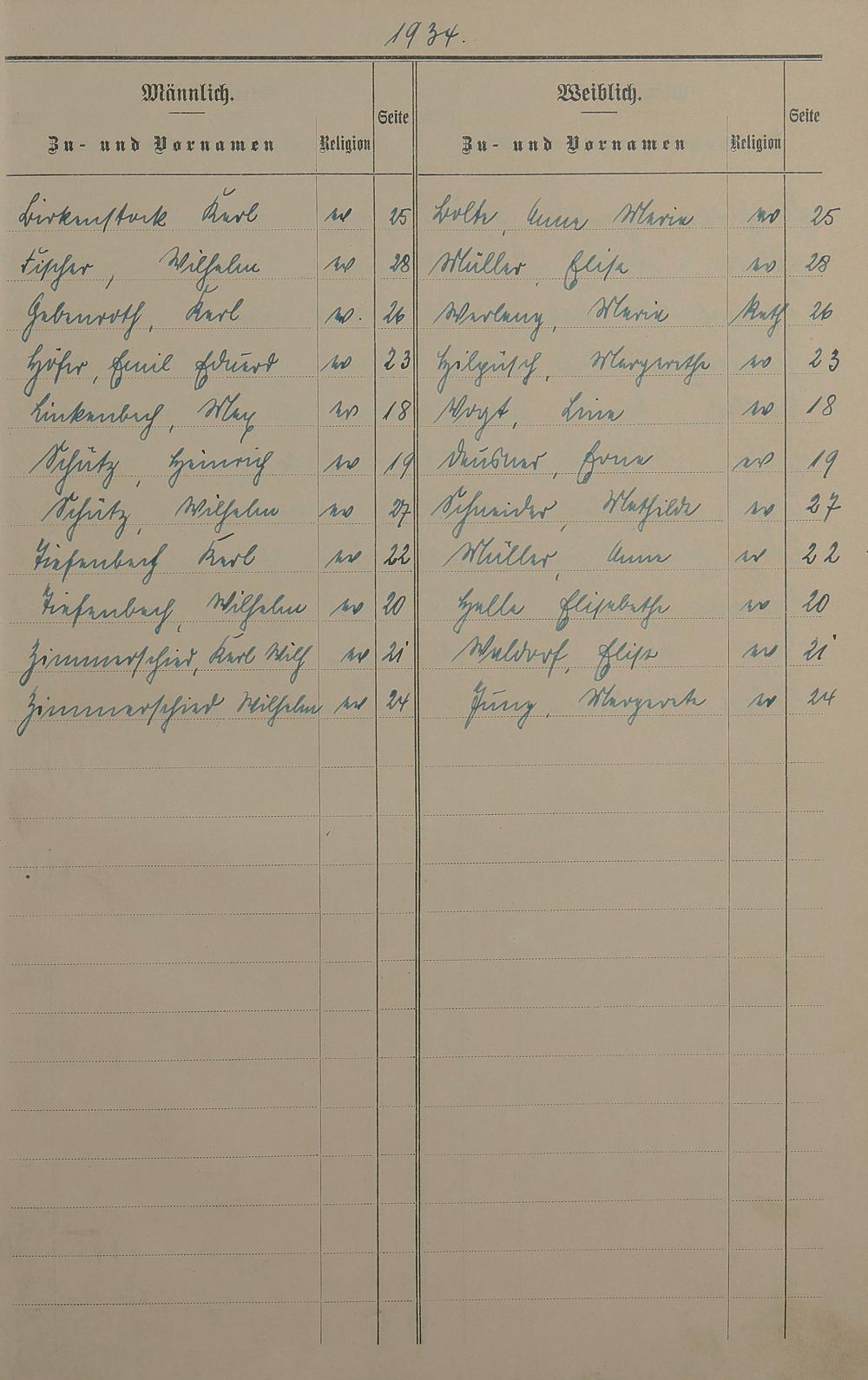 Heiratsregister 1934