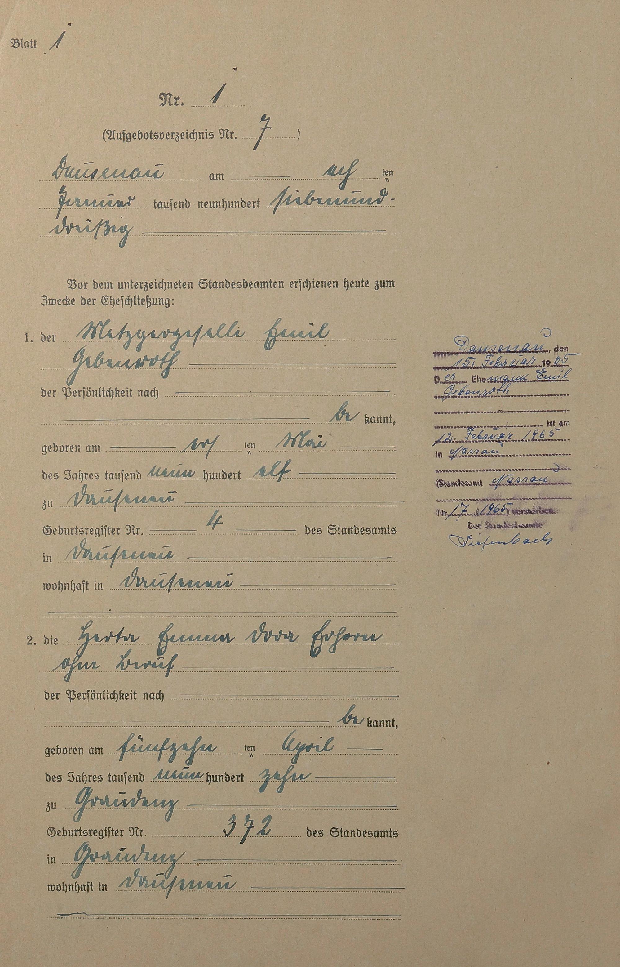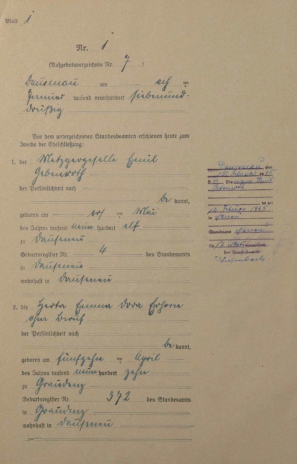 Heiratsregister 1937