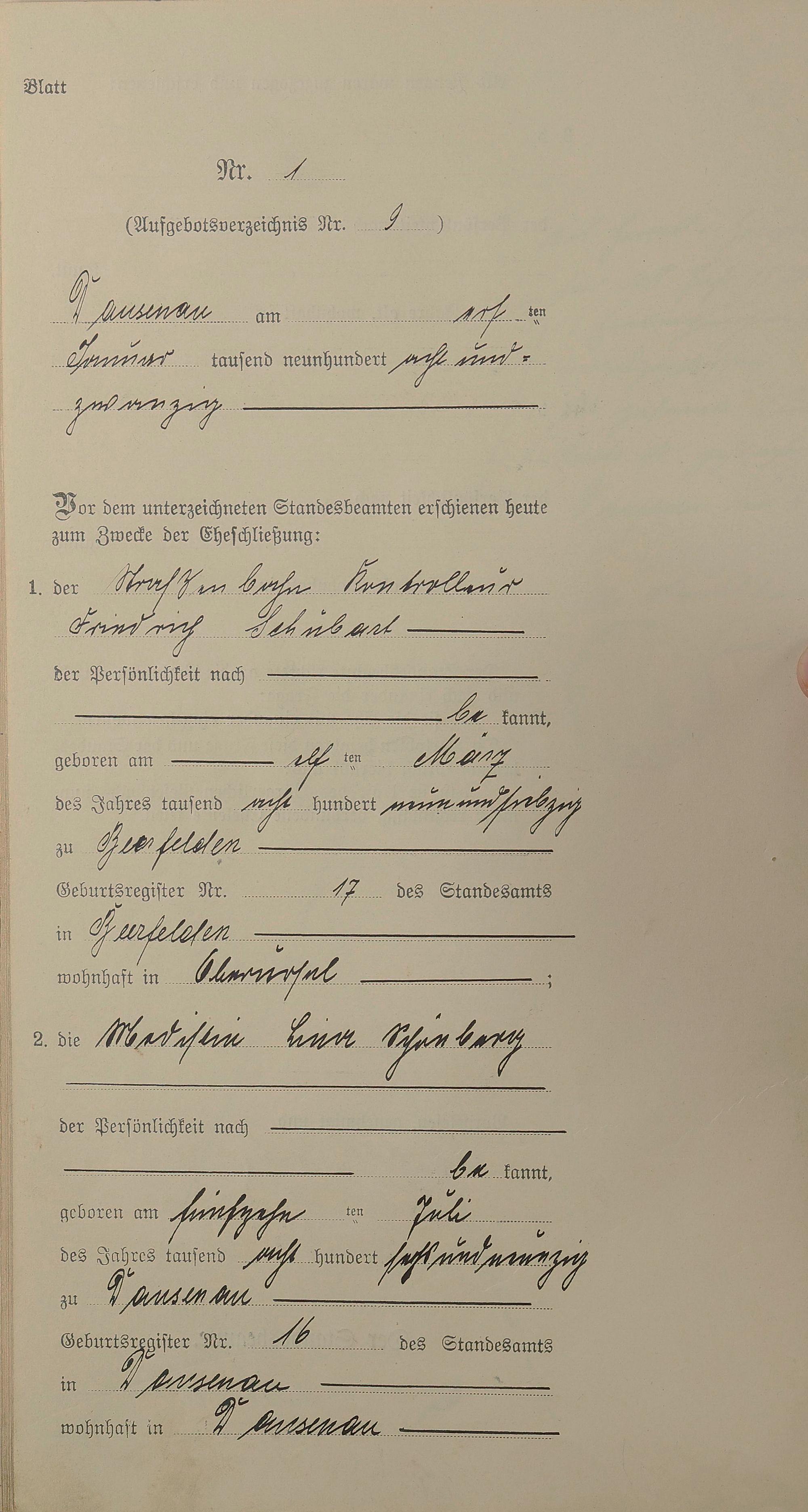 Heiratsregister 1928