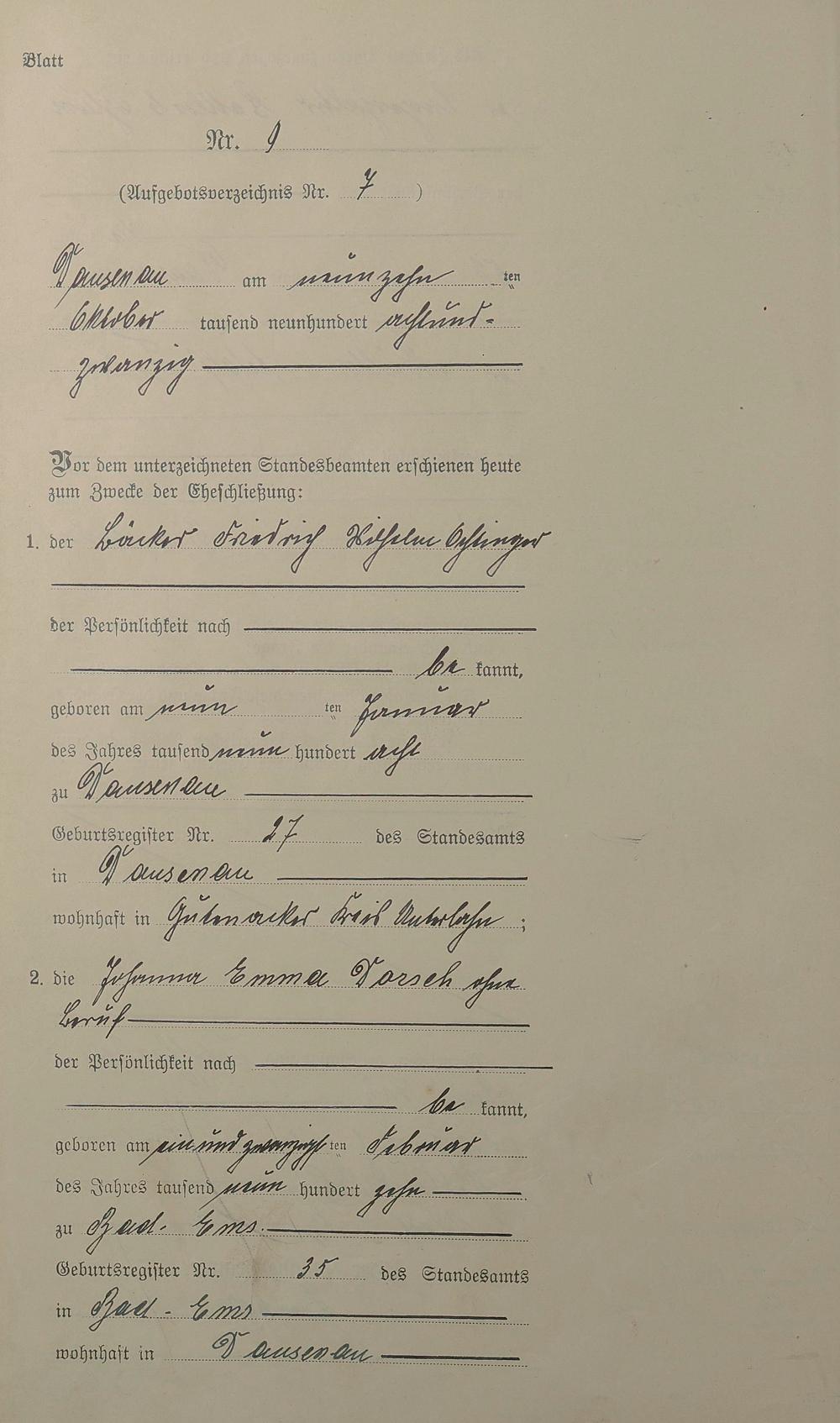 Heiratsregister 1928