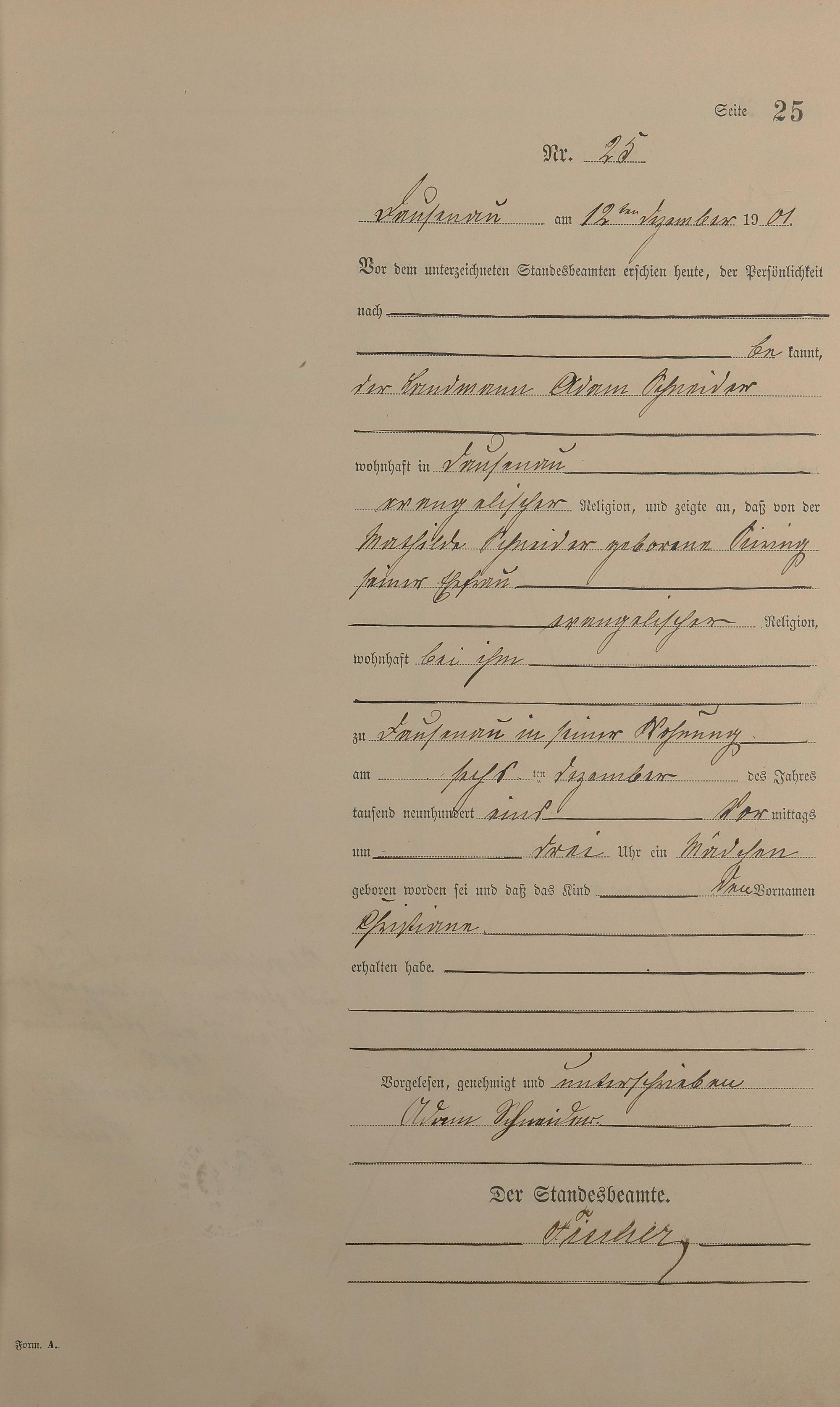 Geburtsregister 1901
