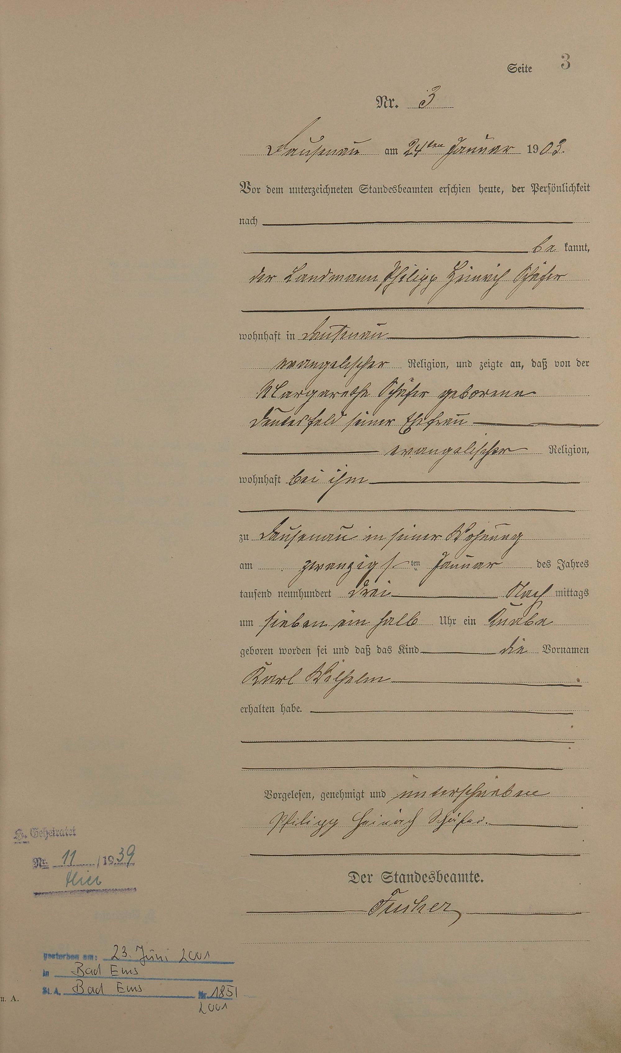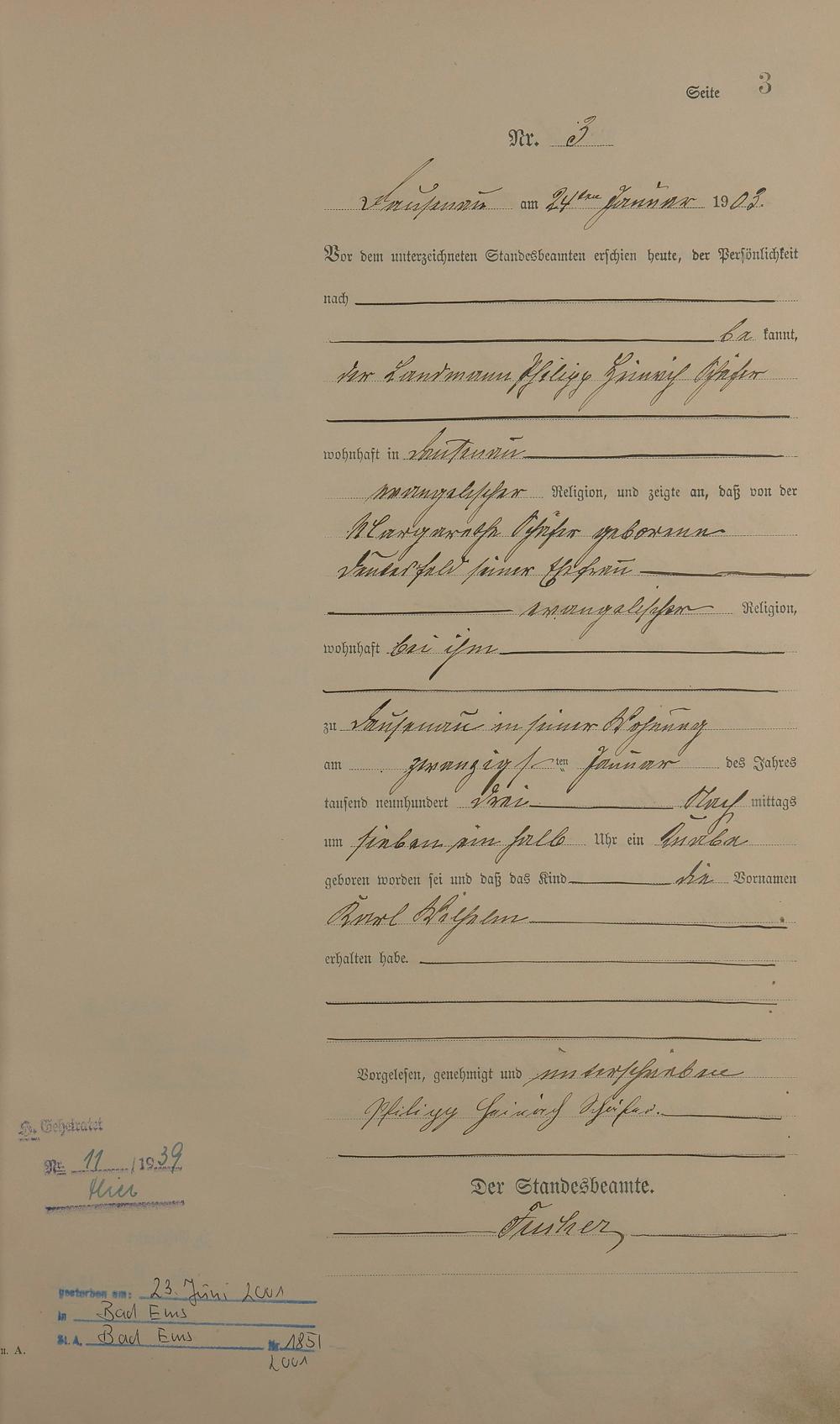 Geburtsregister 1903