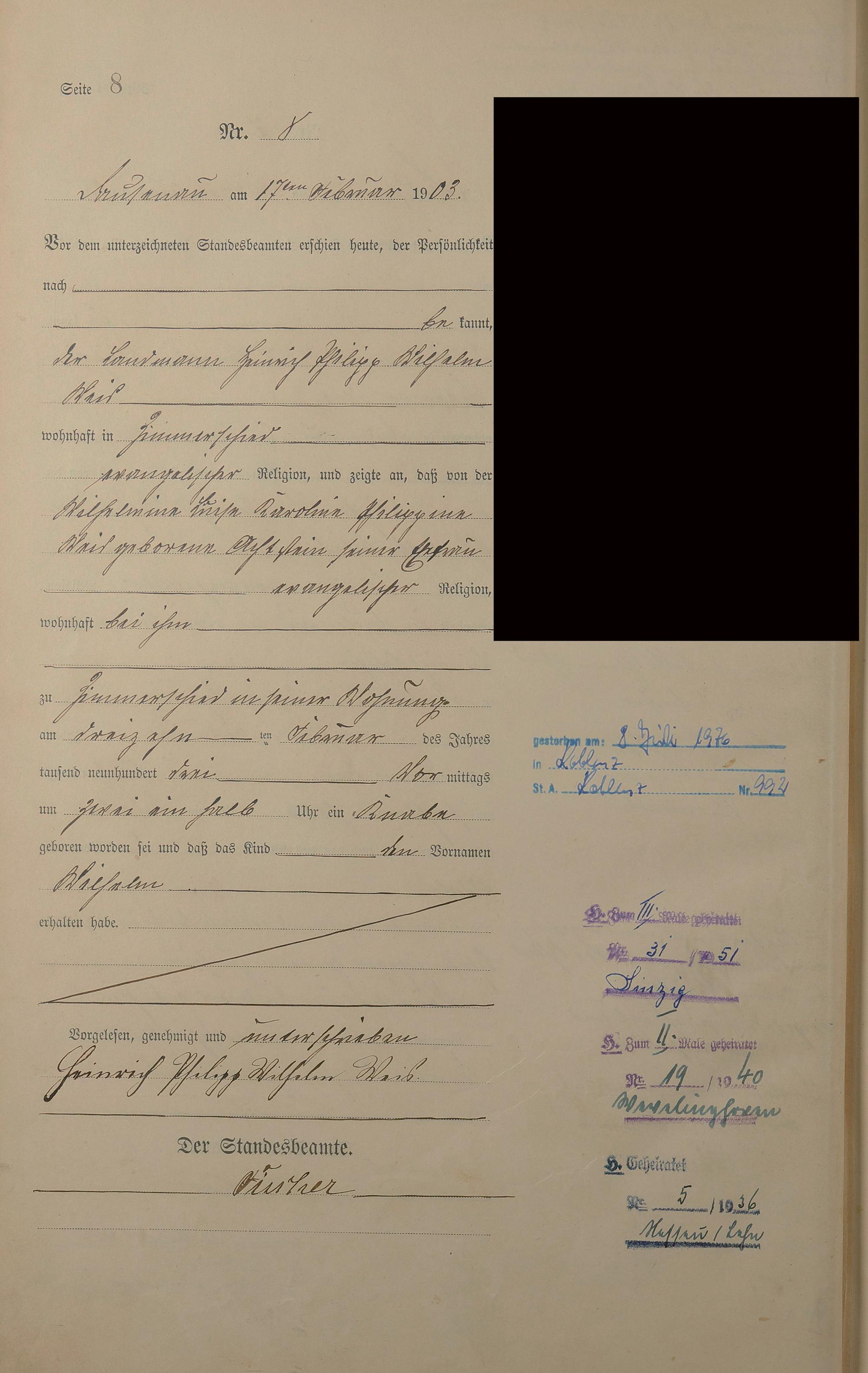 Geburtsregister 1903