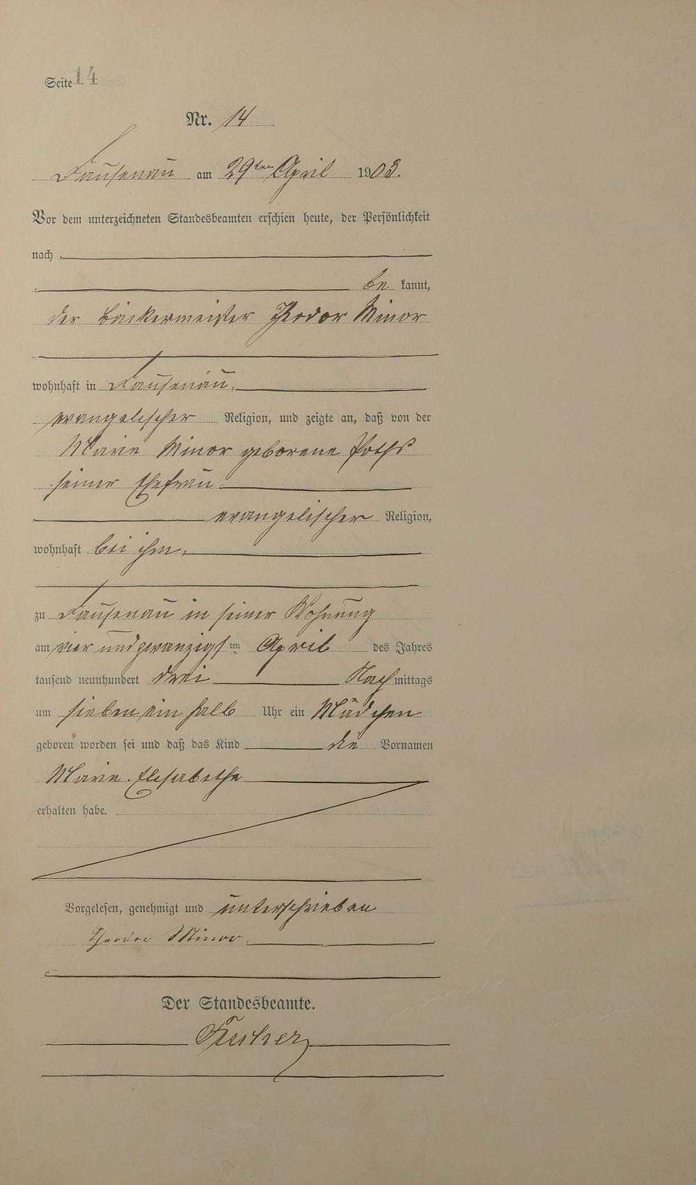 Geburtsregister 1903