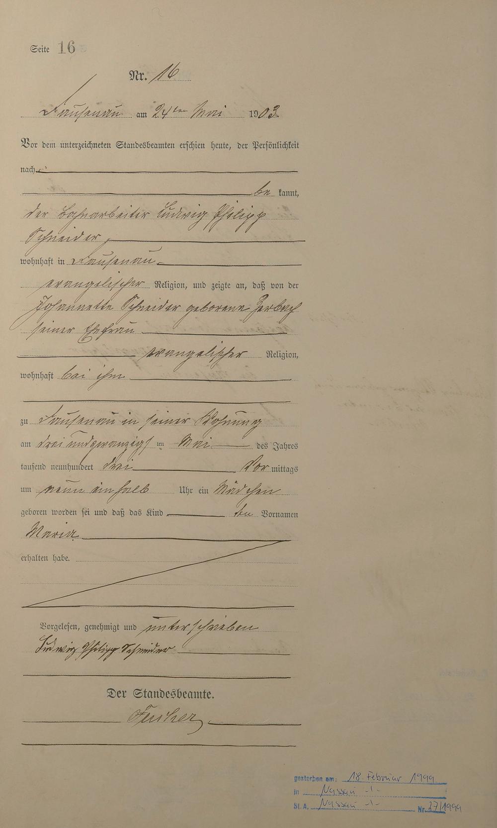 Geburtsregister 1903