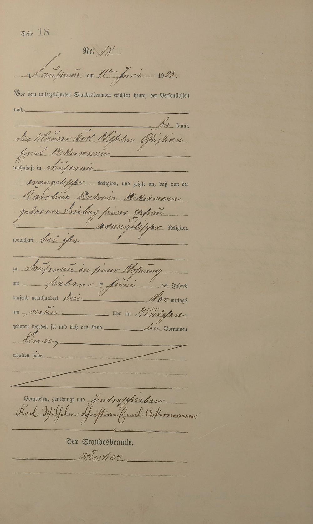 Geburtsregister 1903