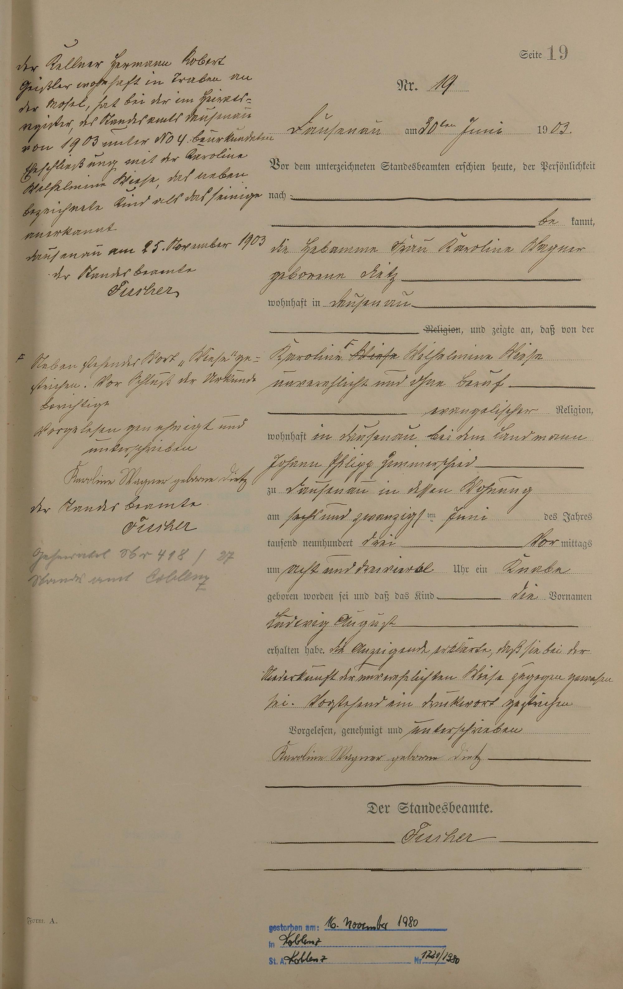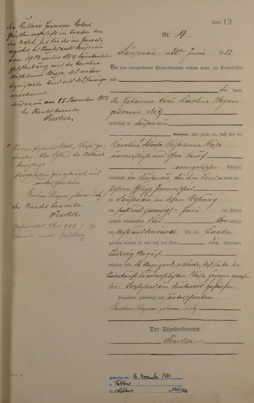 Geburtsregister 1903