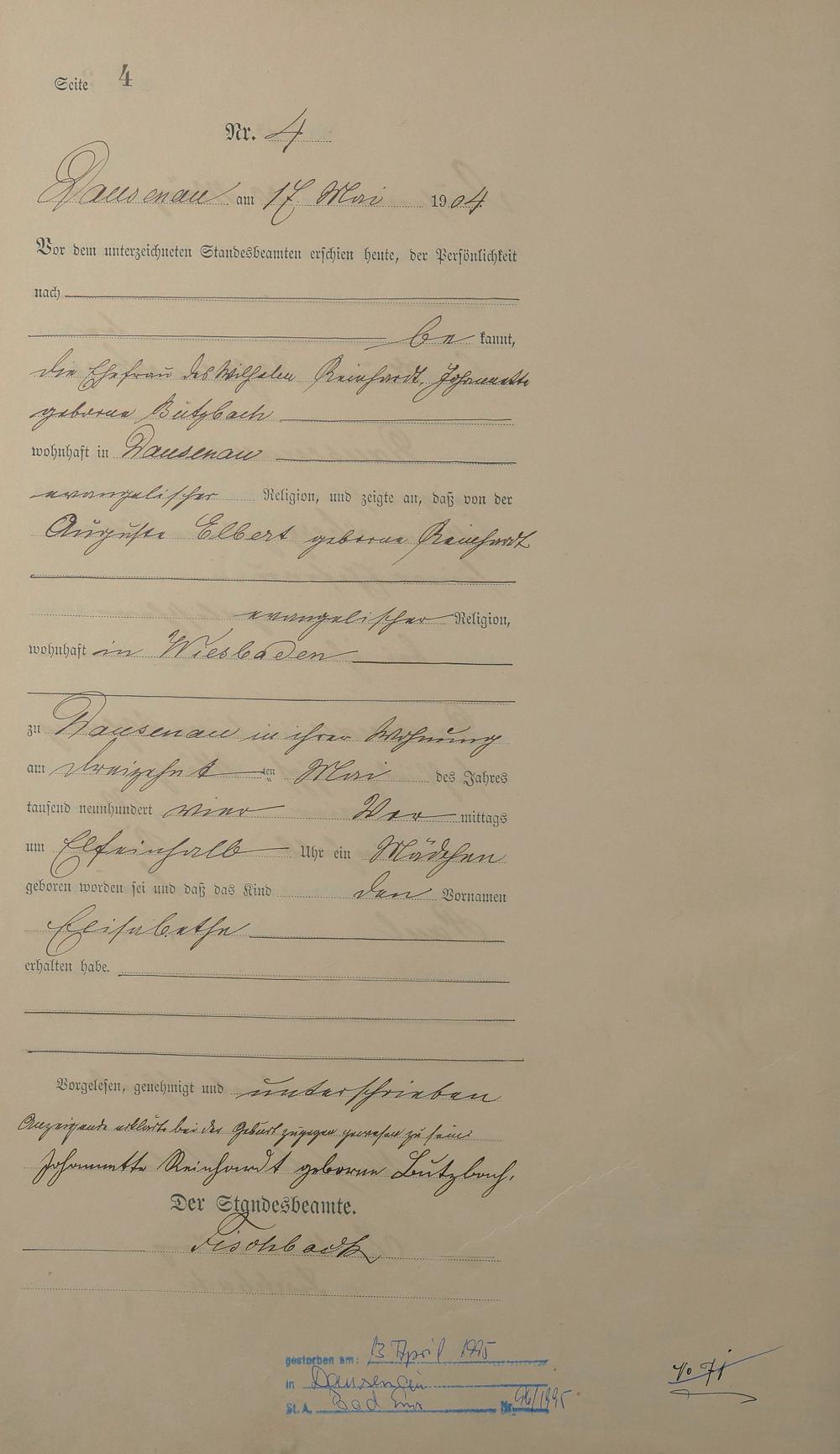 Geburtsregister 1904