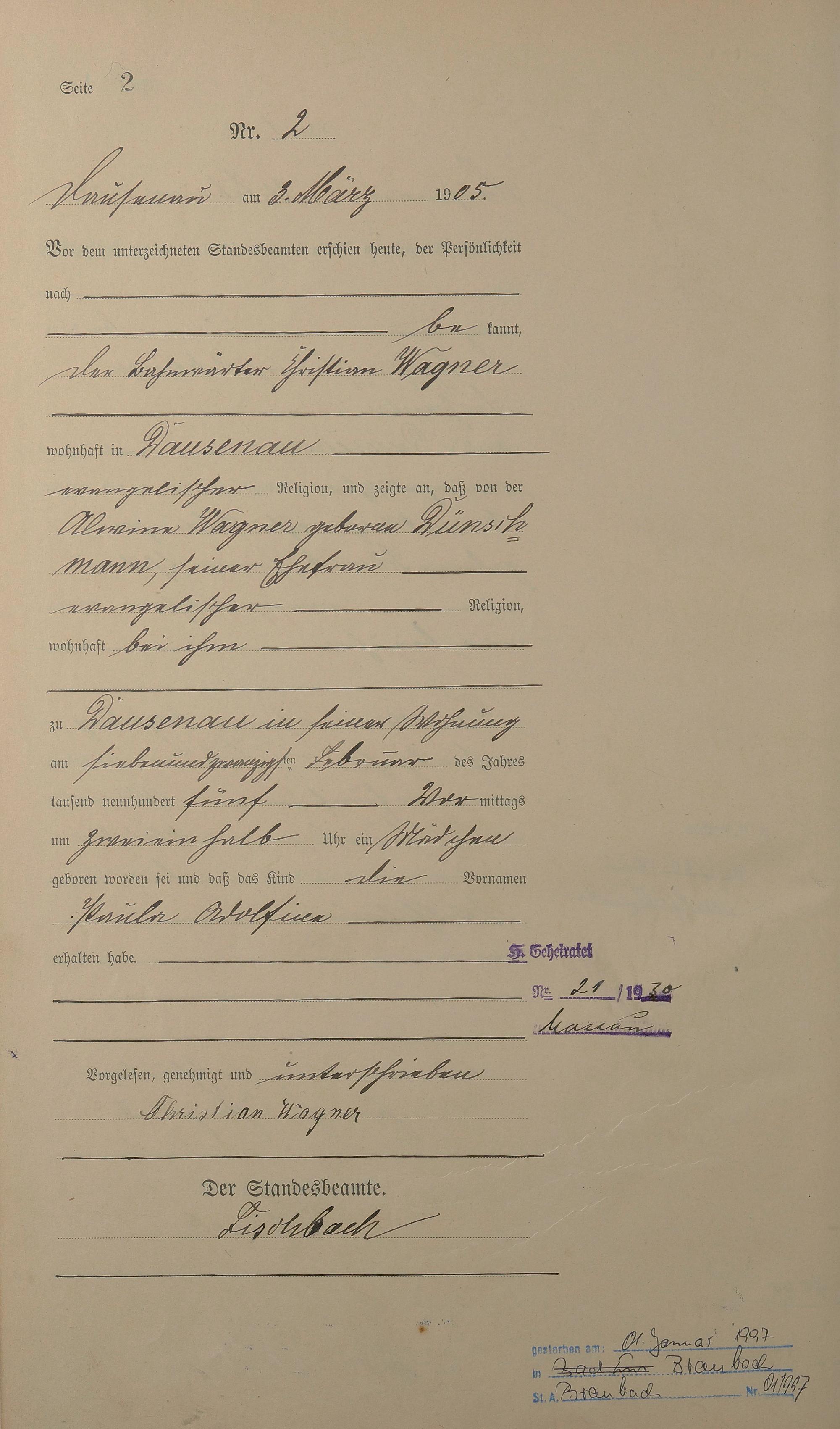 Geburtsregister 1905