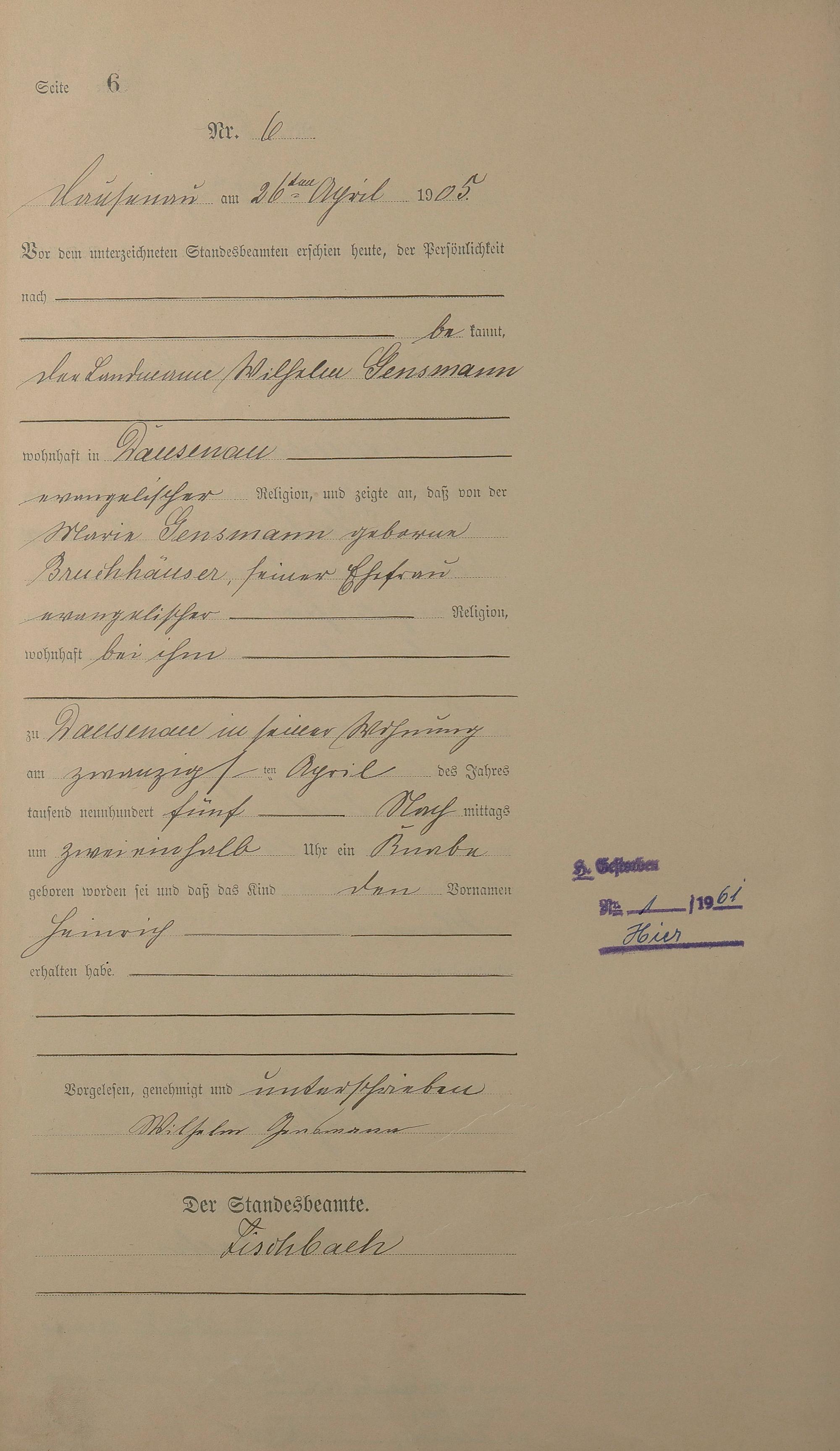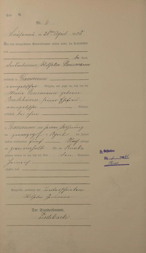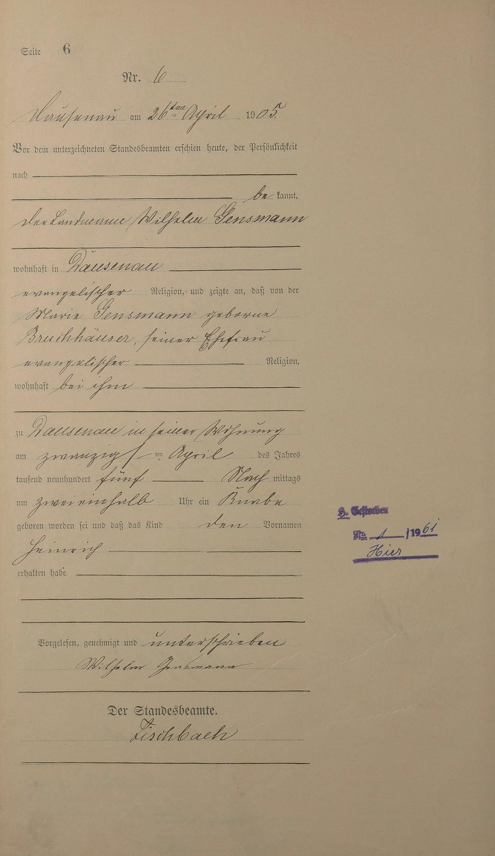 Geburtsregister 1905