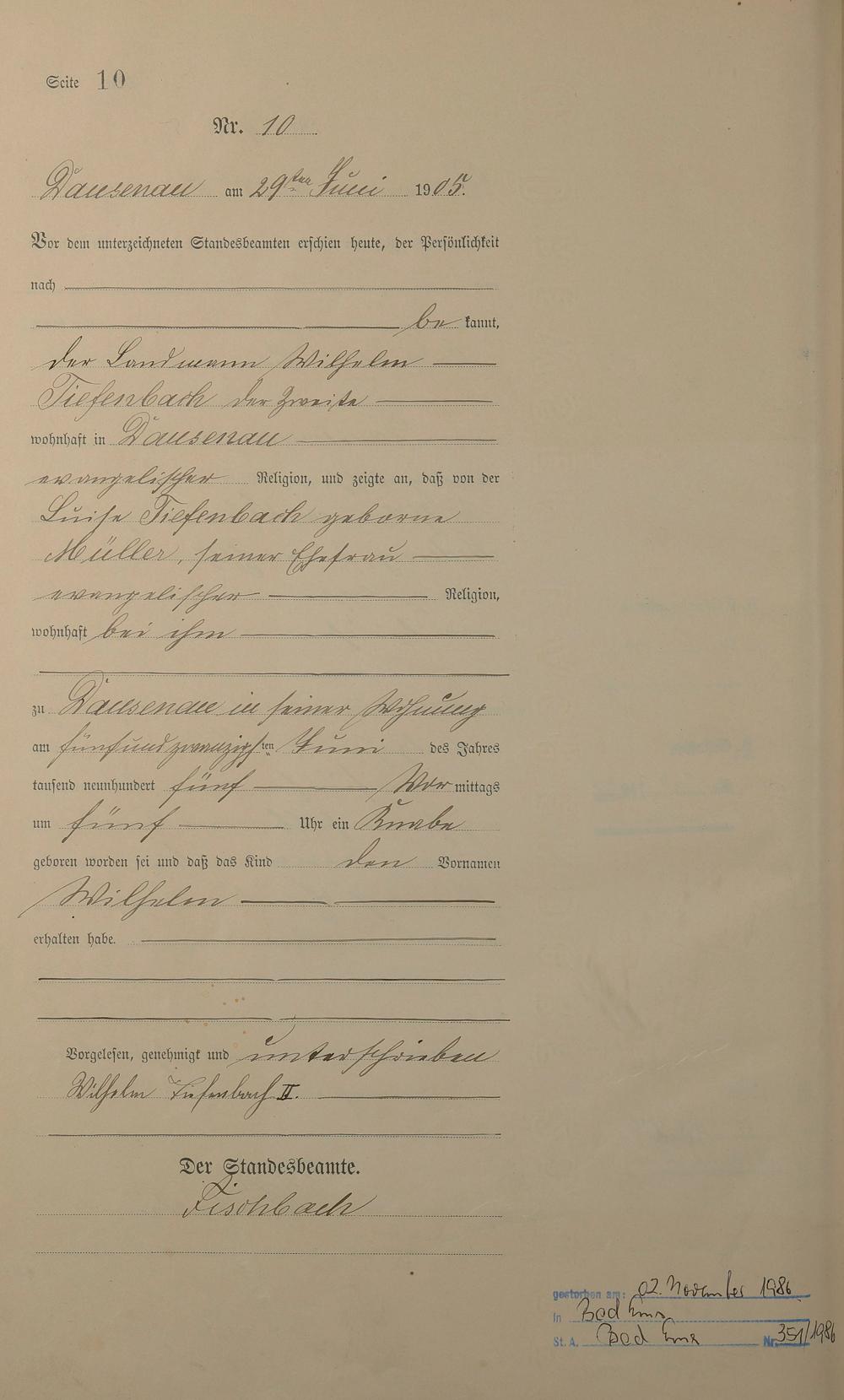 Geburtsregister 1905