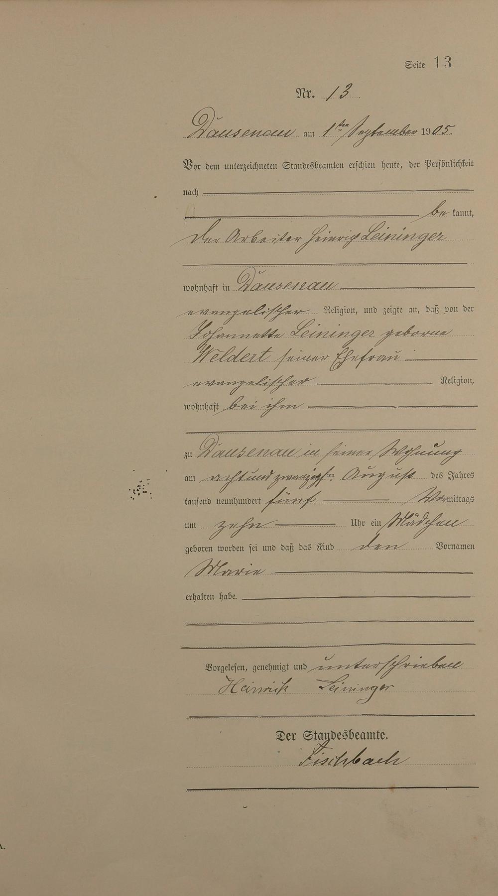 Geburtsregister 1905