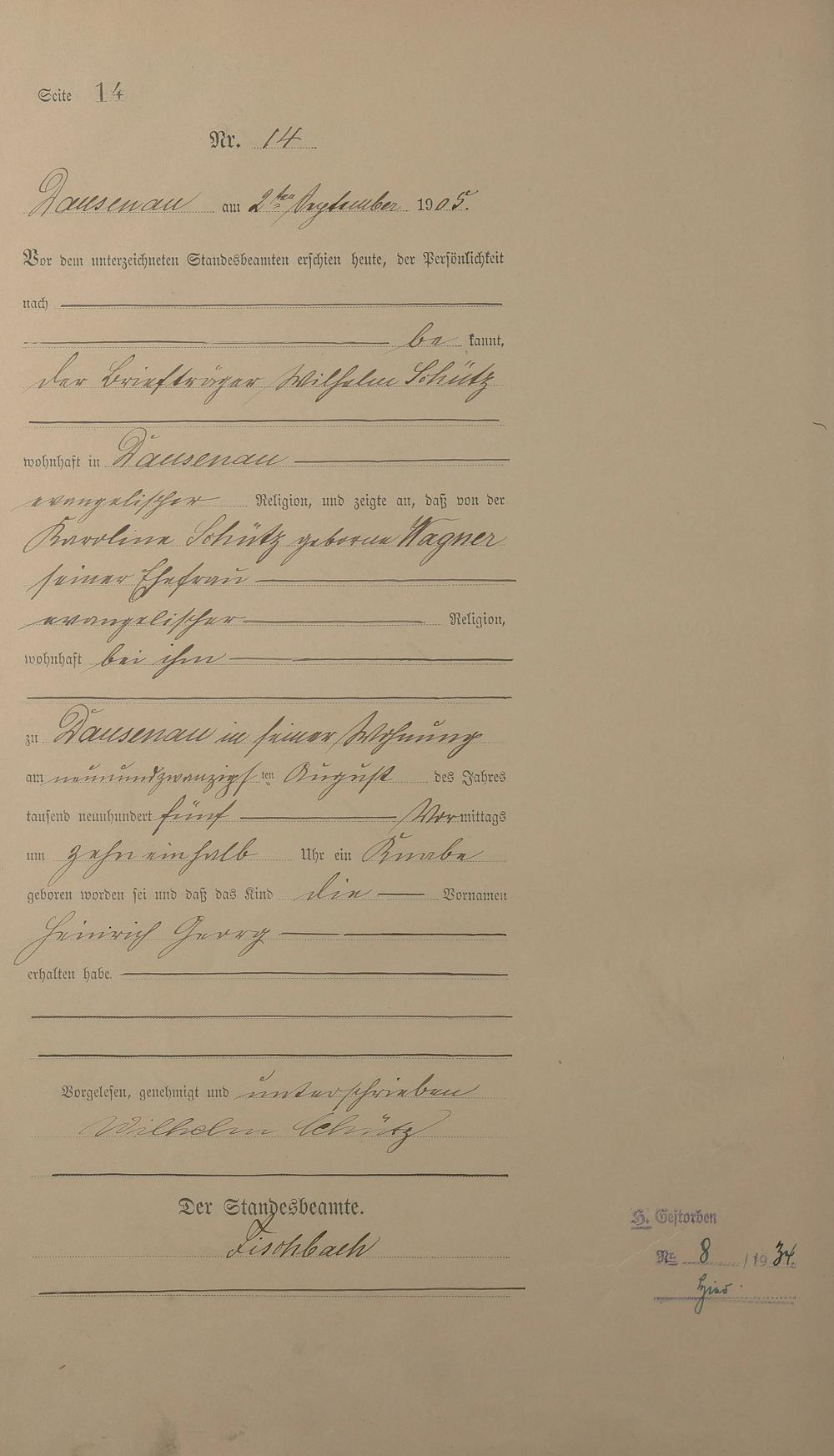 Geburtsregister 1905