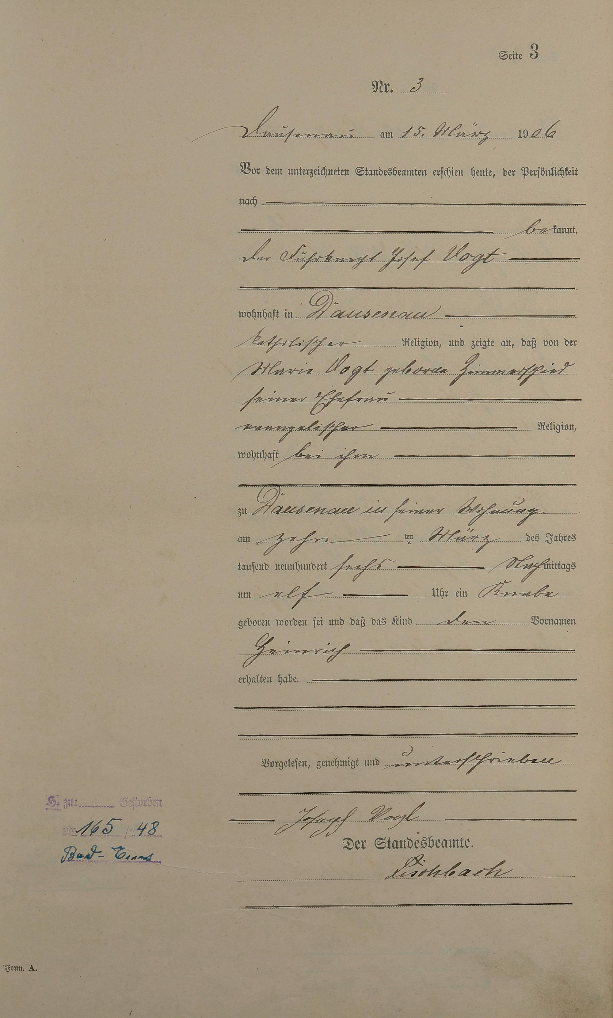 Geburtsregister 1906