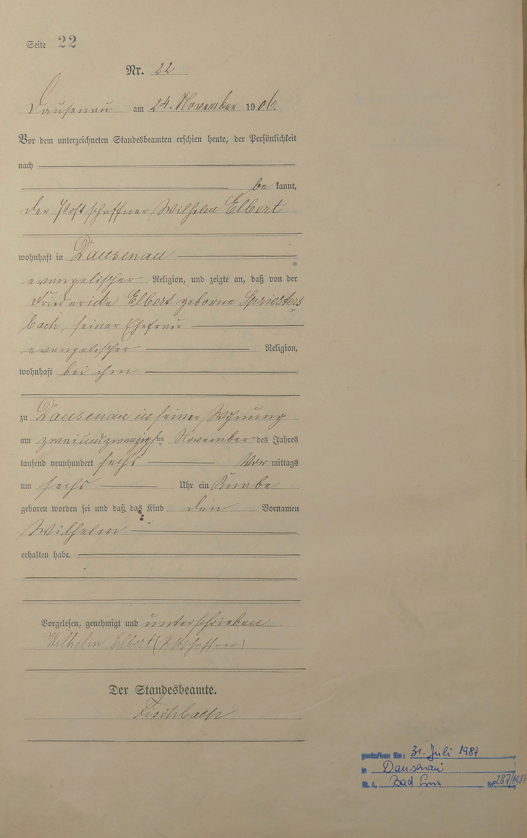 Geburtsregister 1906