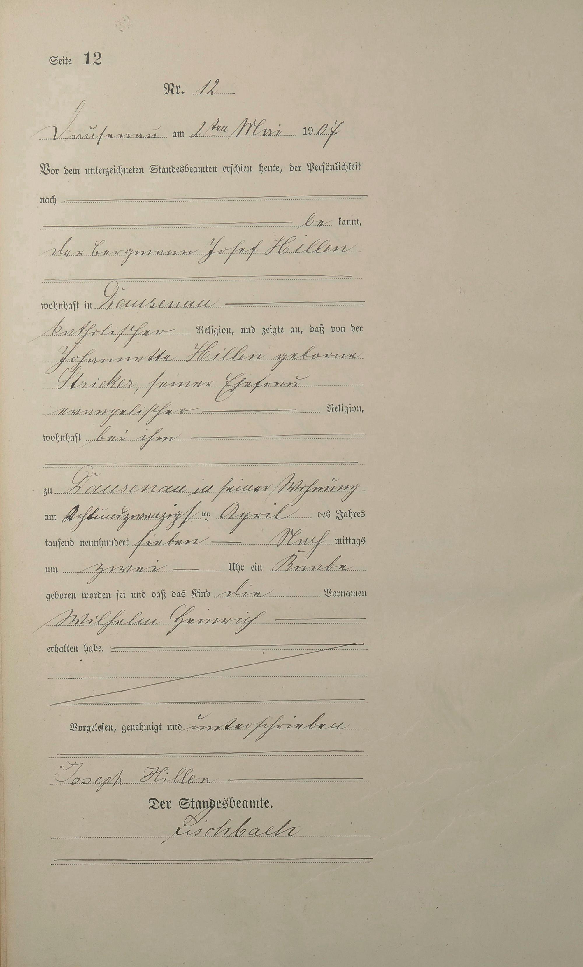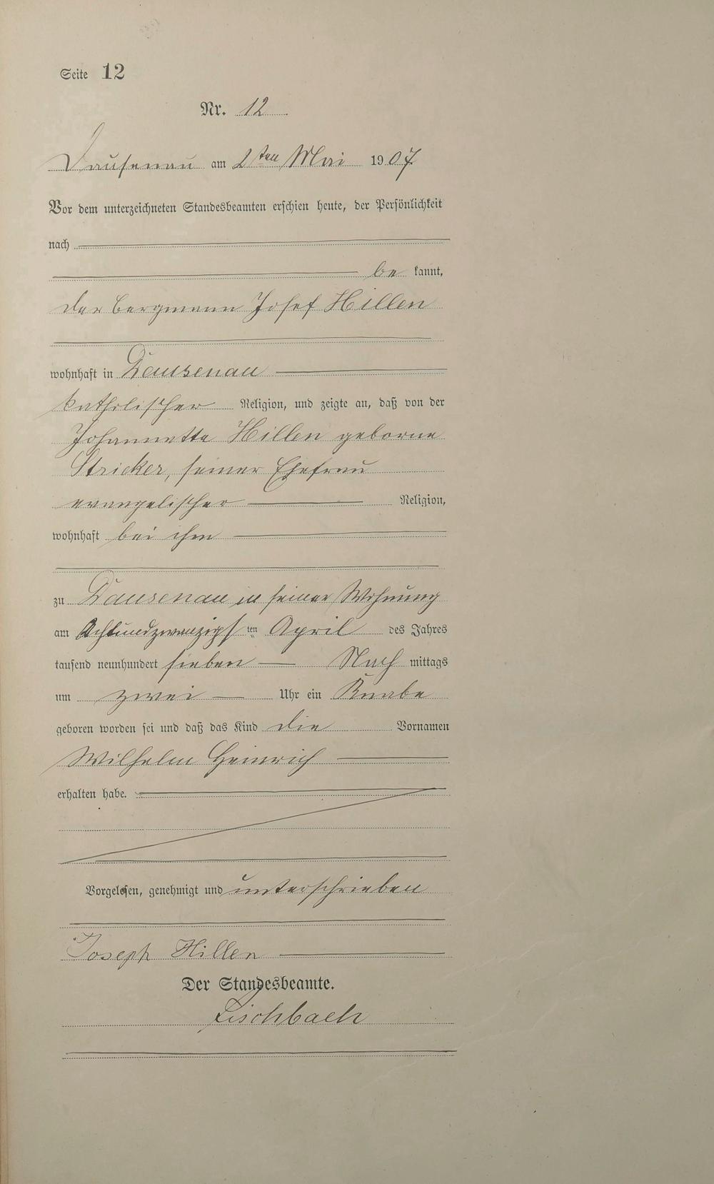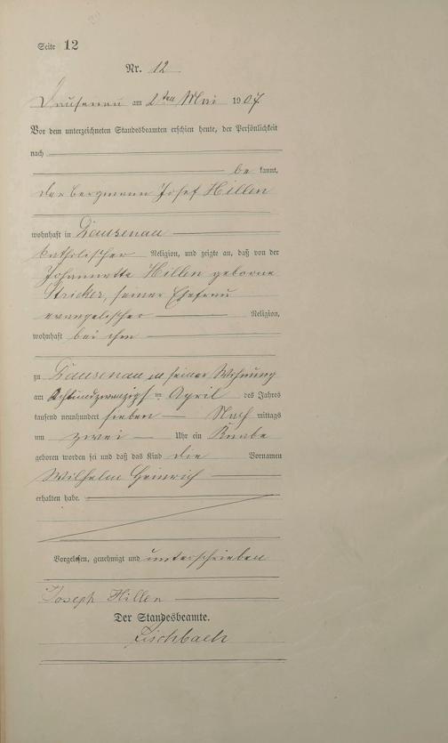 Geburtsregister 1907