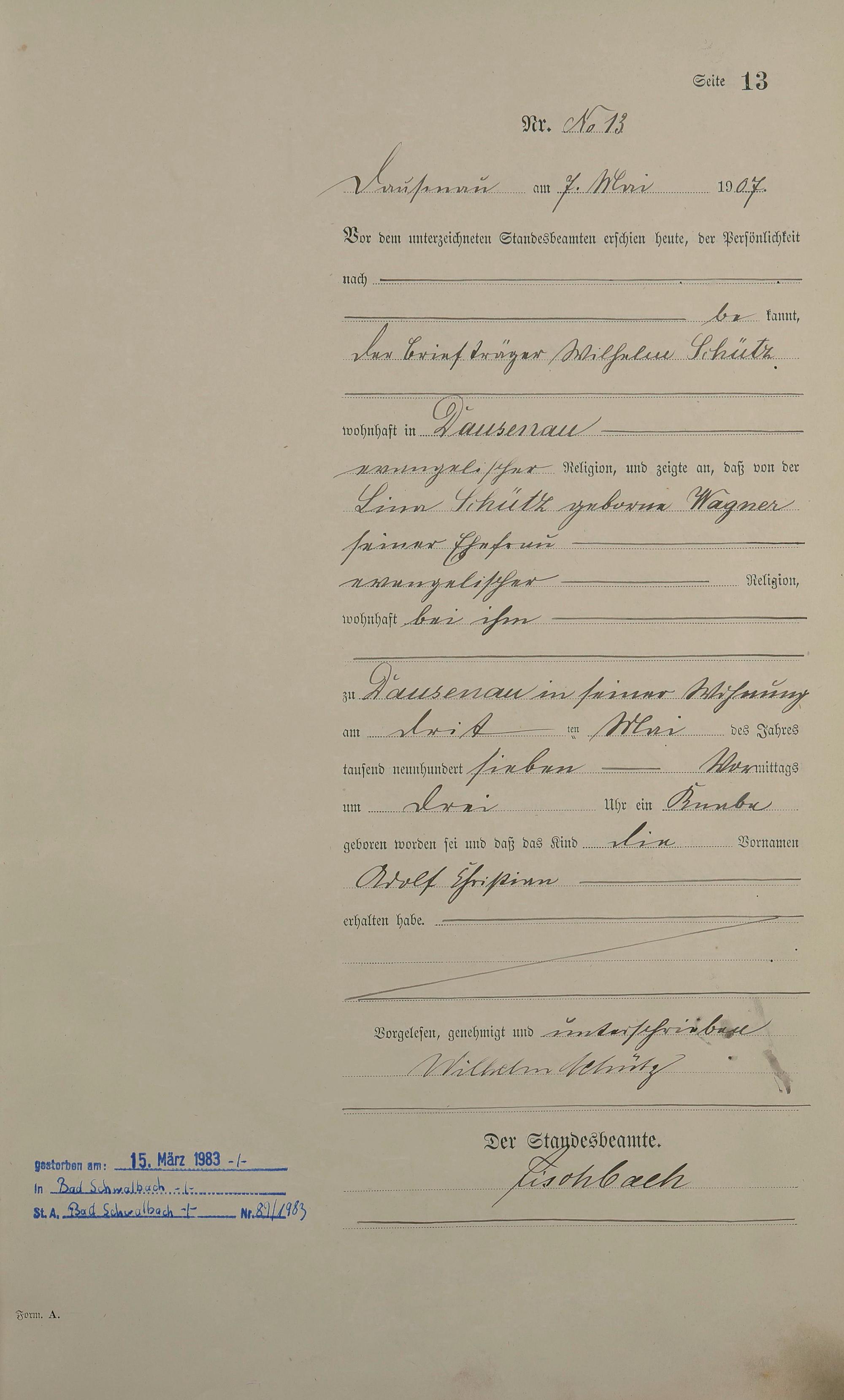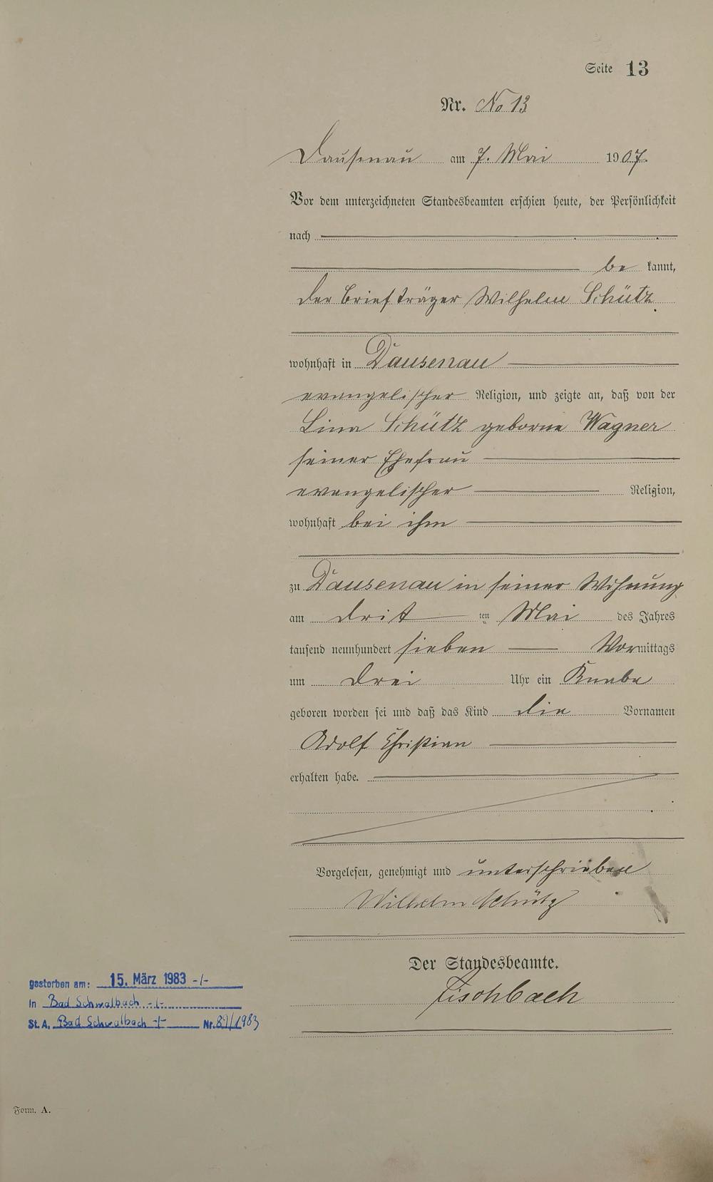 Geburtsregister 1907