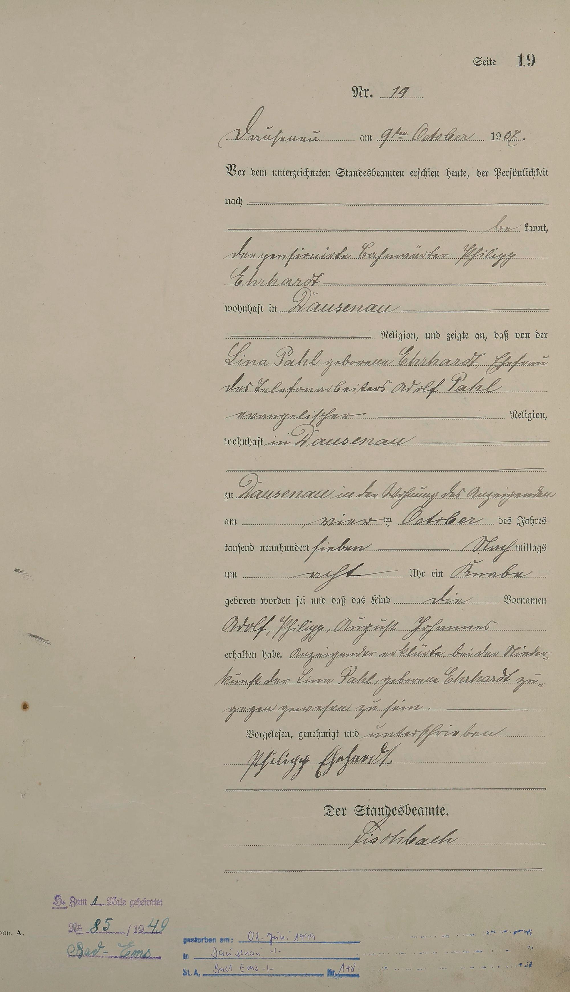 Geburtsregister 1907