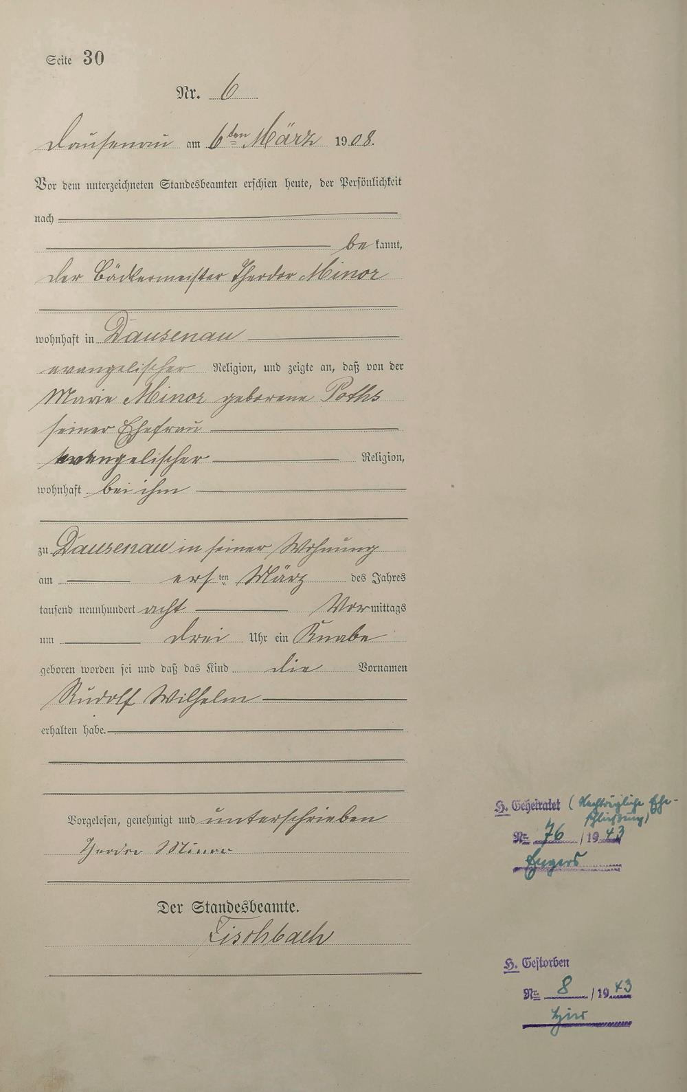 Geburtsregister 1908