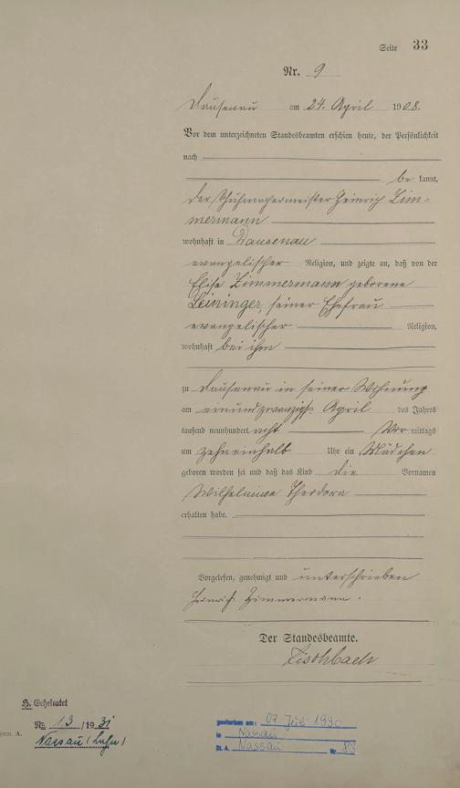 Geburtsregister 1908