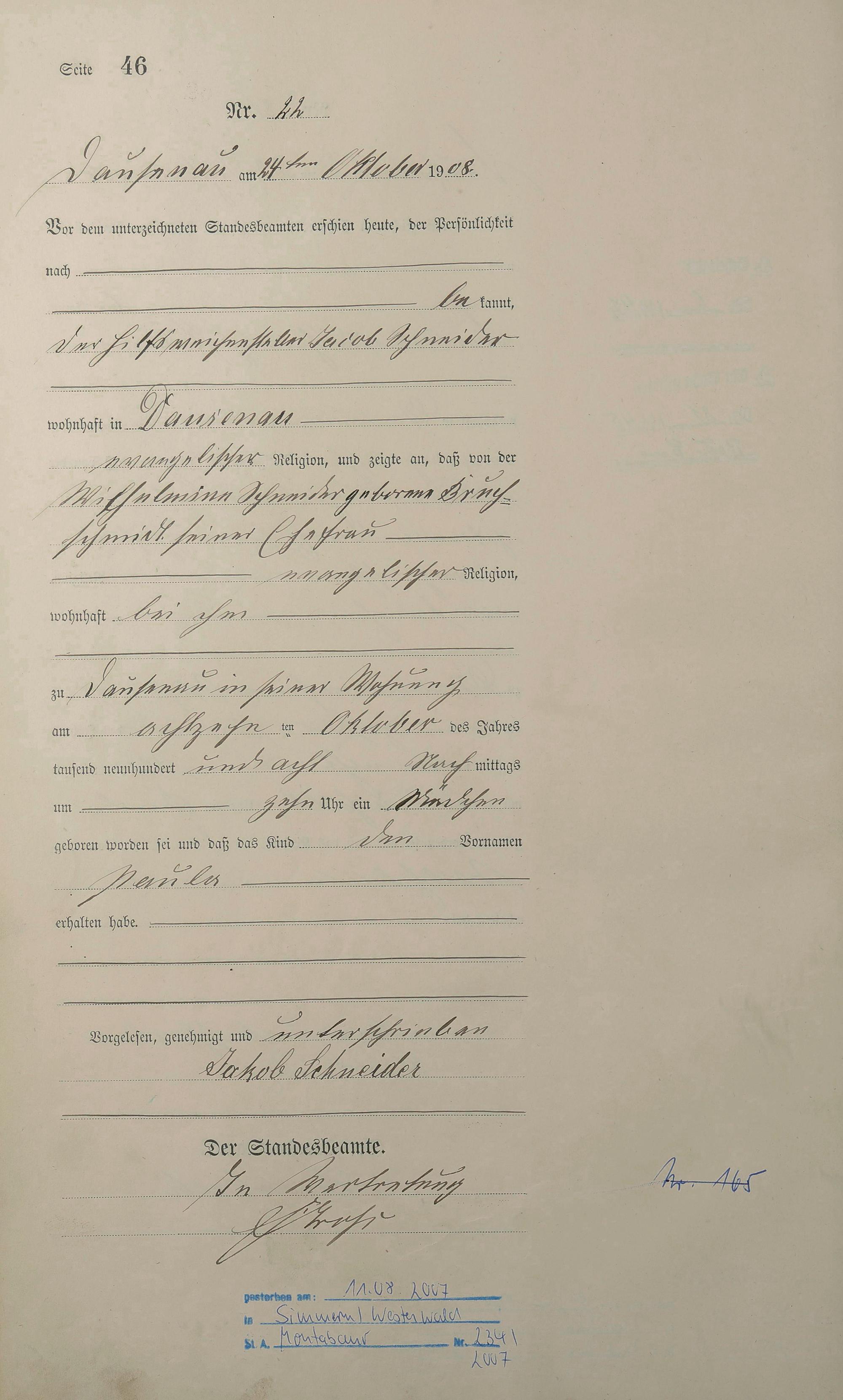 Geburtsregister 1908