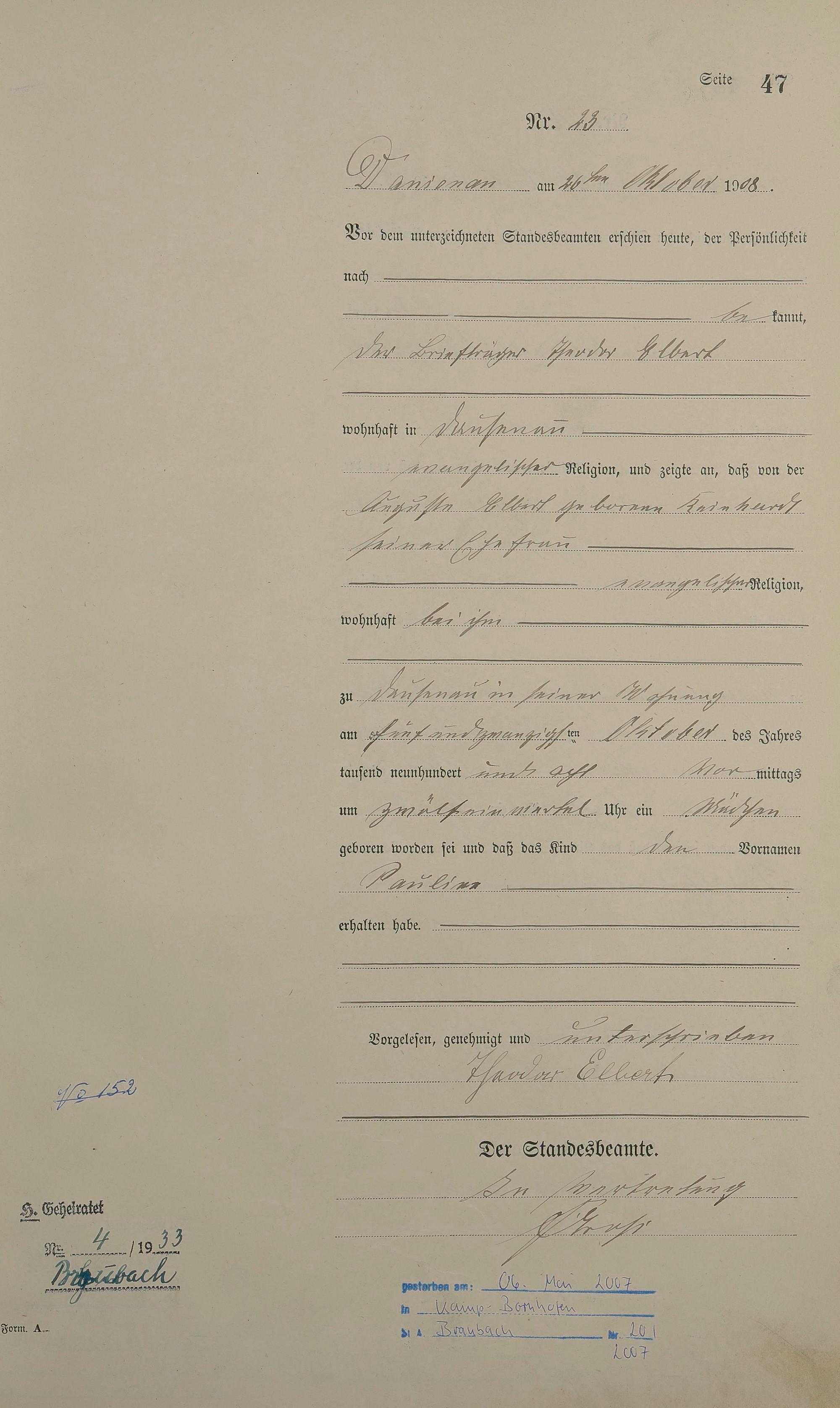 Geburtsregister 1908