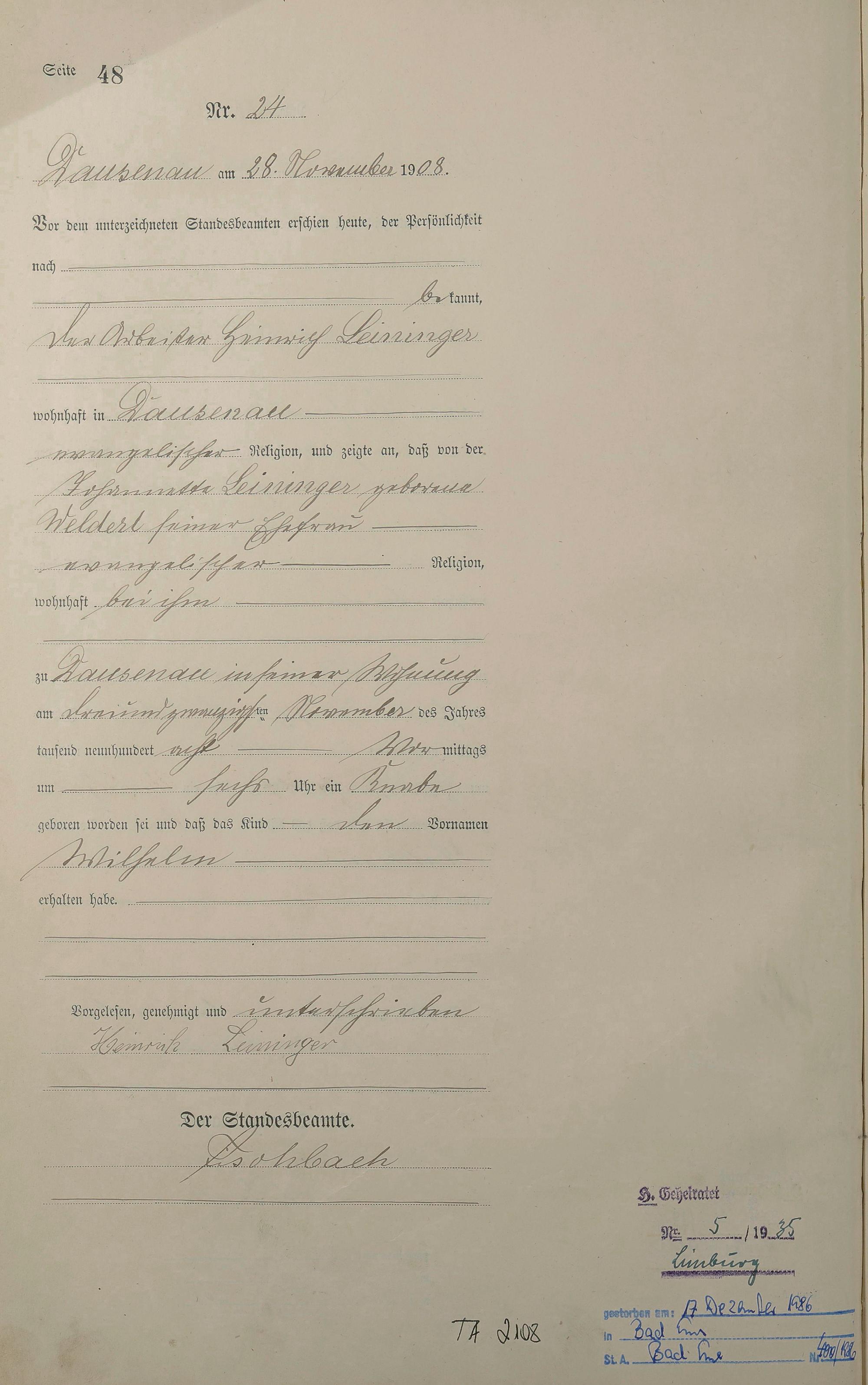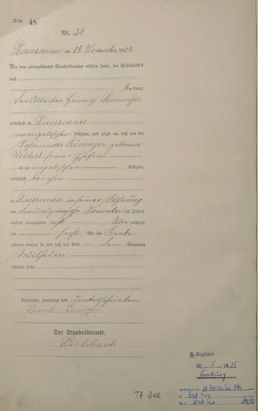 Geburtsregister 1908