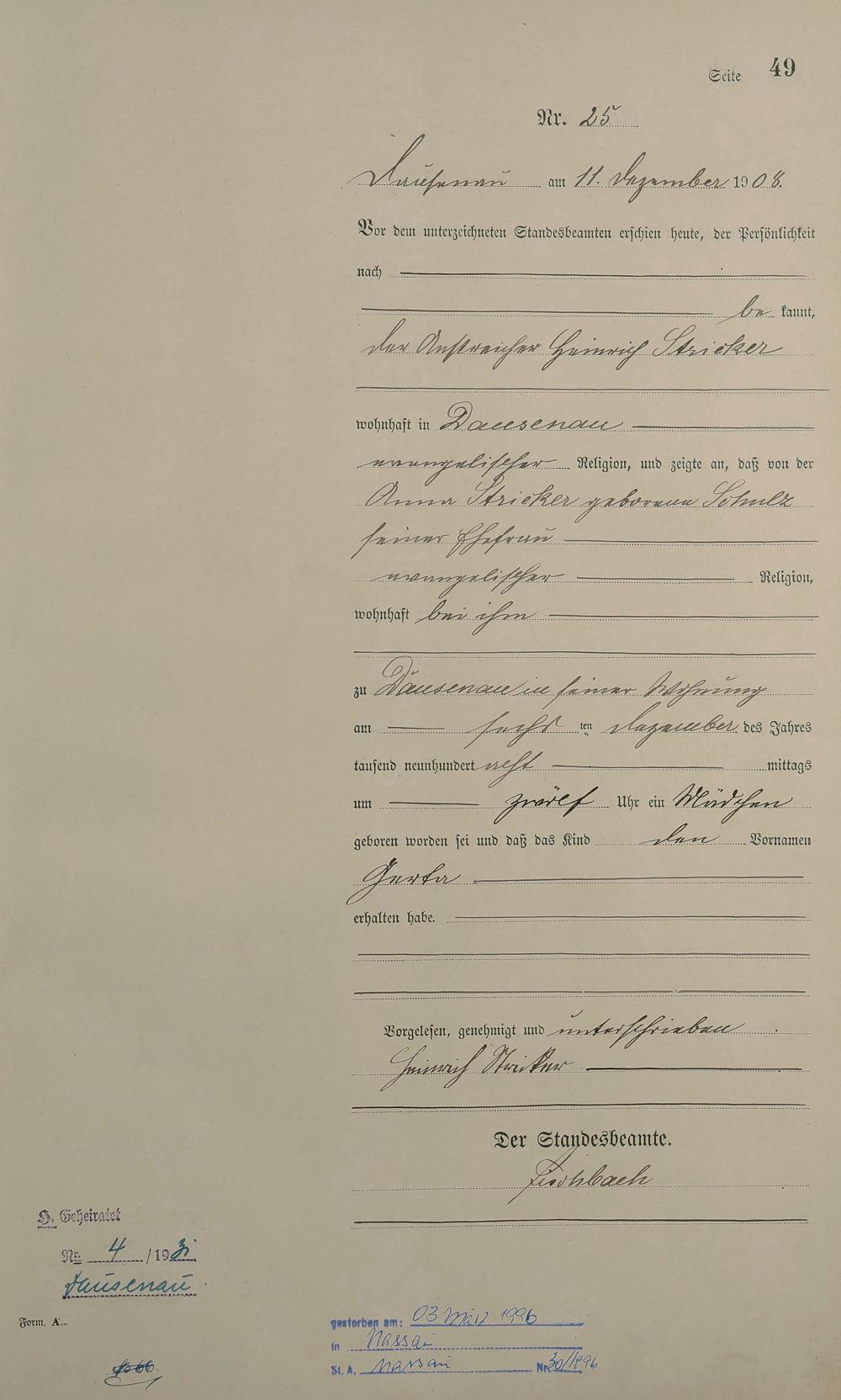 Geburtsregister 1908