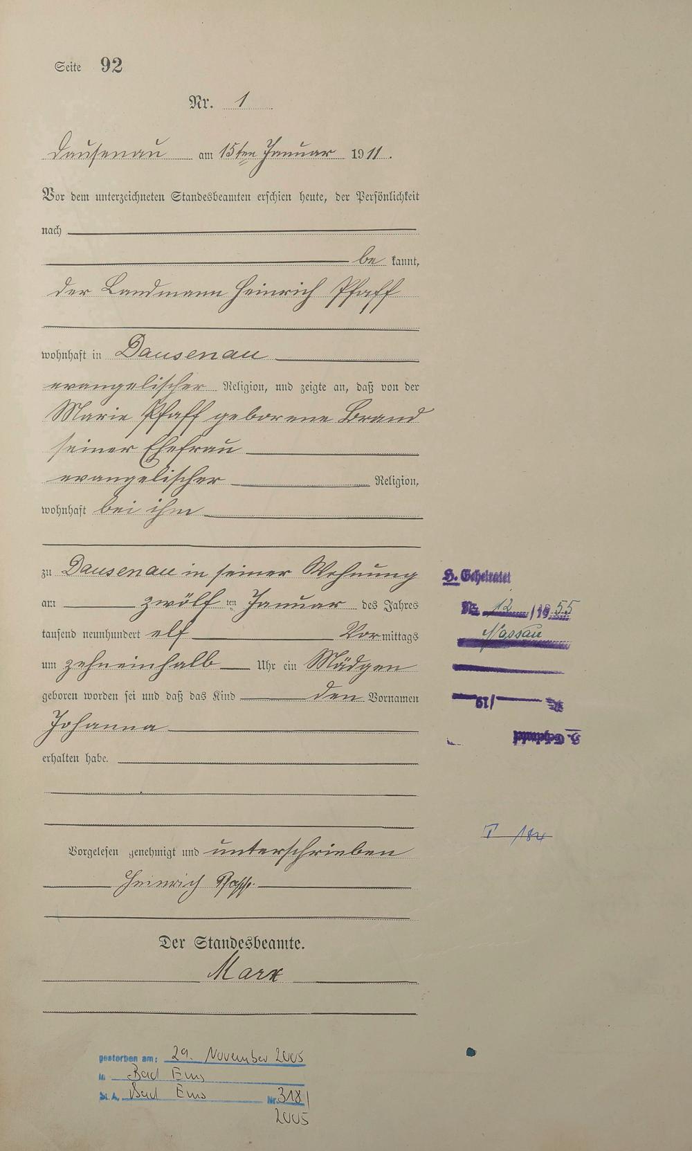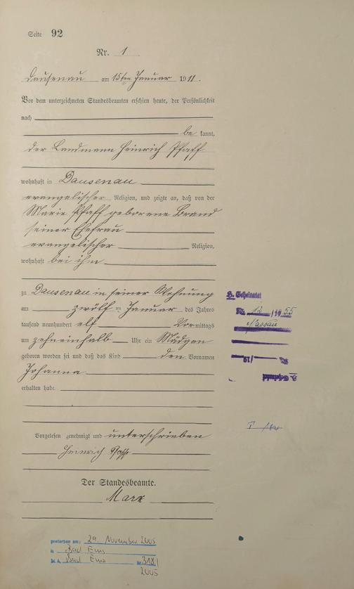 2002/11: Geburtsregister 1911