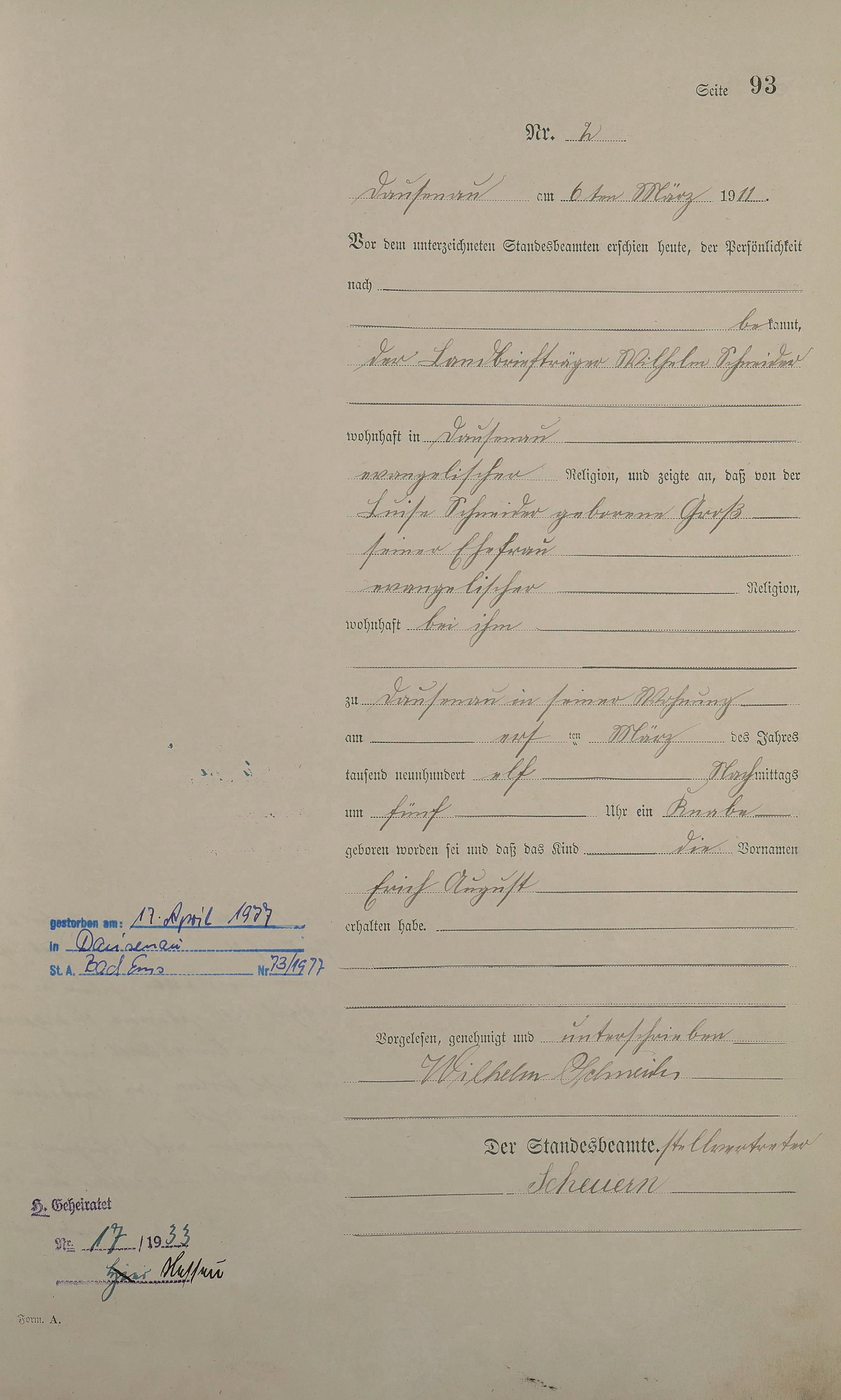 Geburtsregister 1911