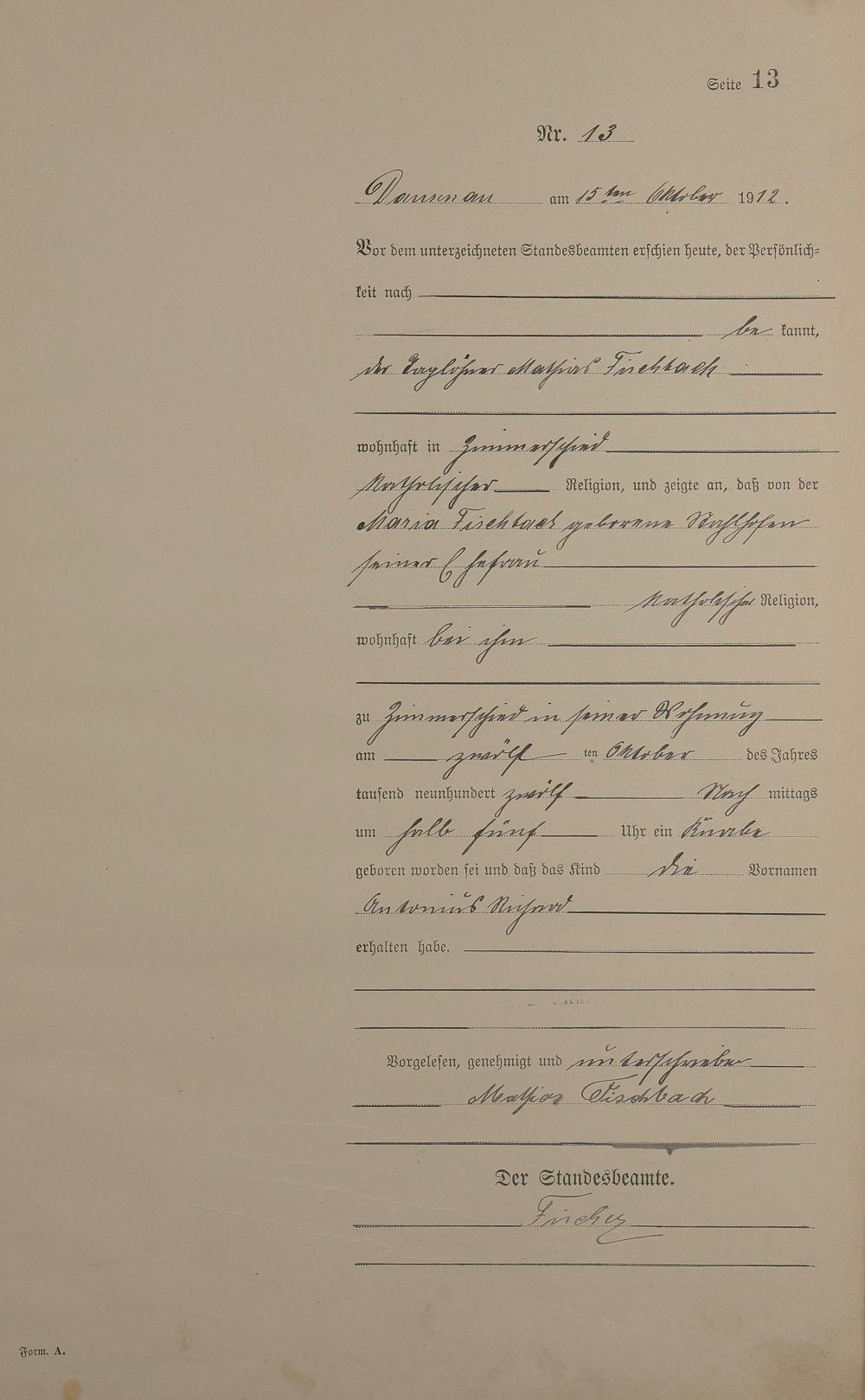 Geburtsregister 1912
