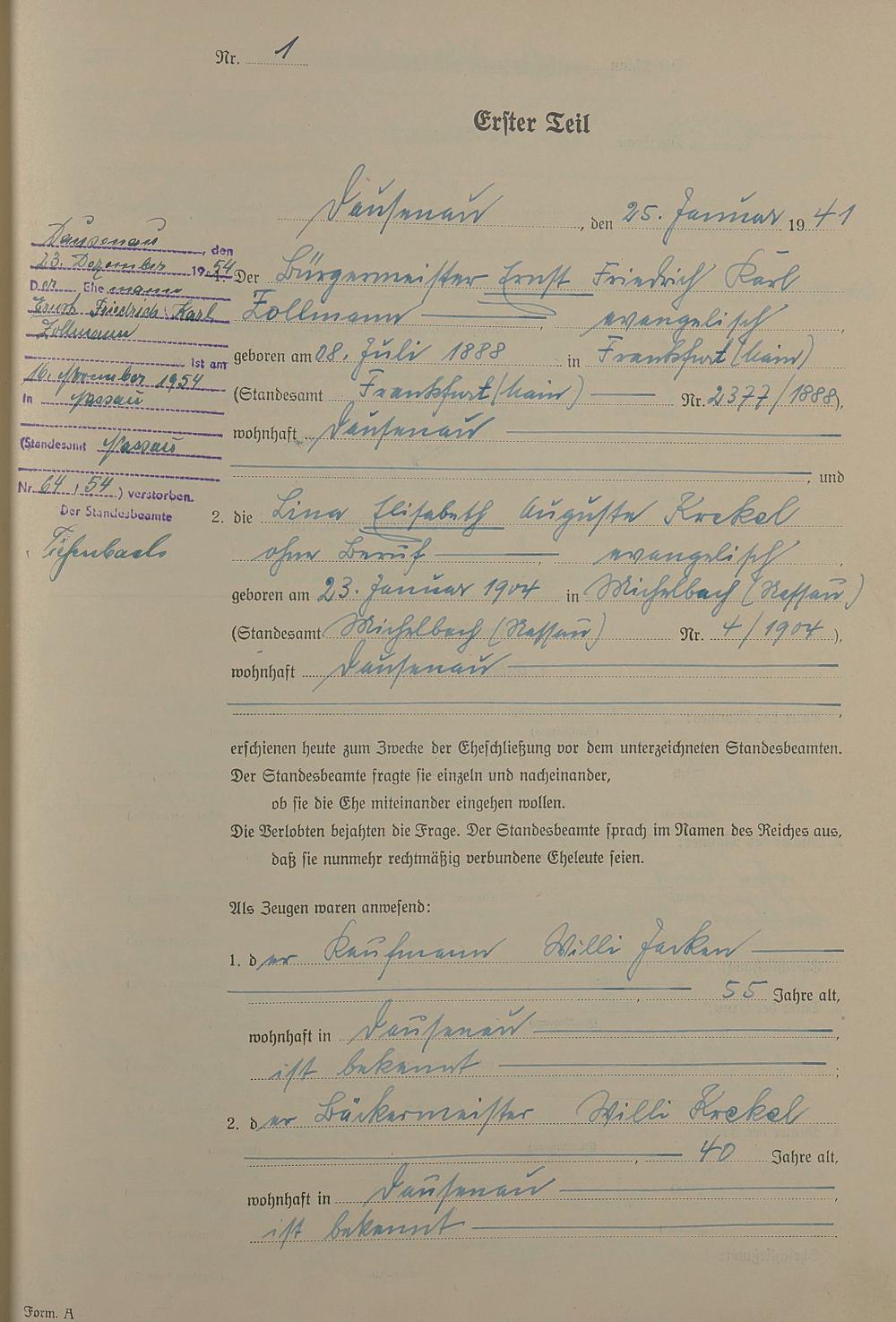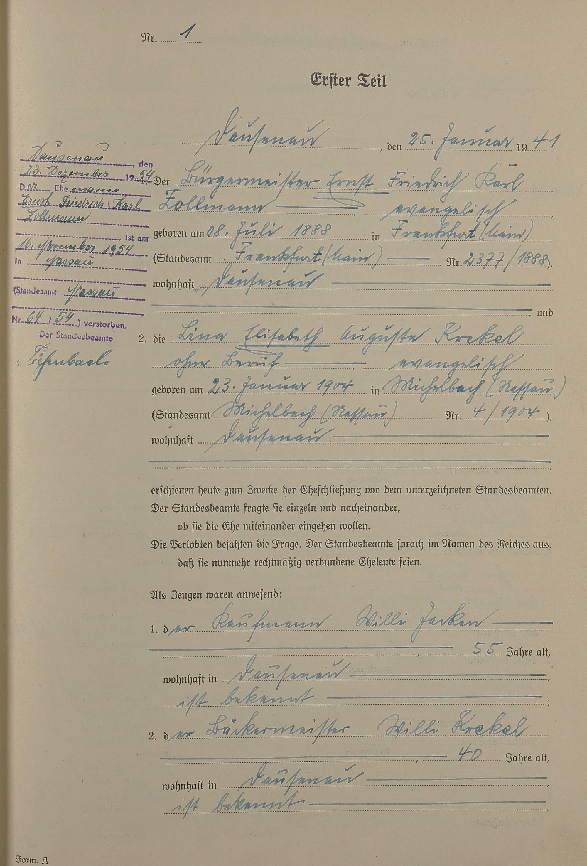 Heiratsregister 1941