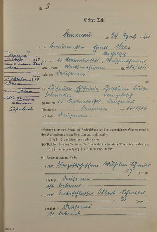 Heiratsregister 1941