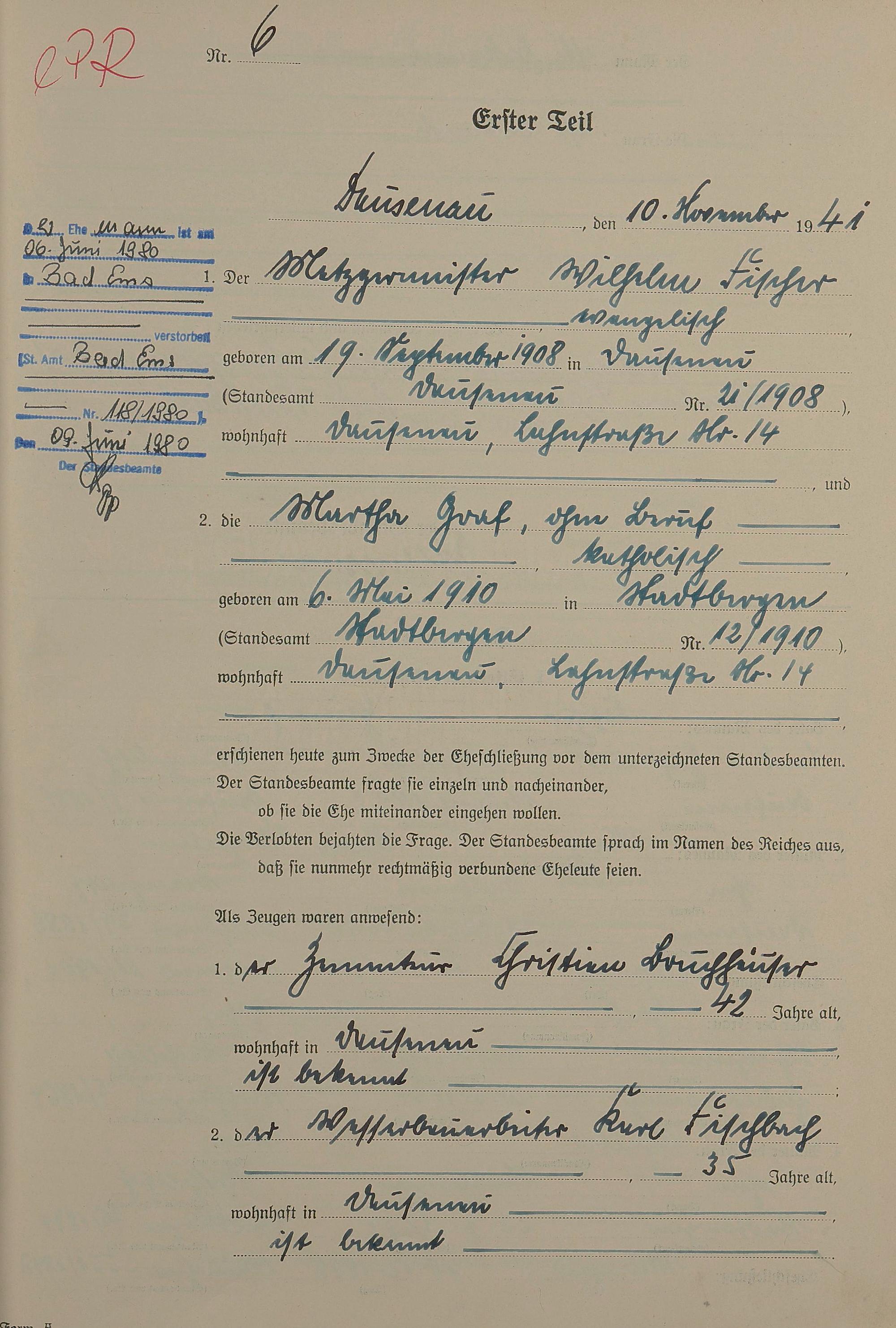 Heiratsregister 1941