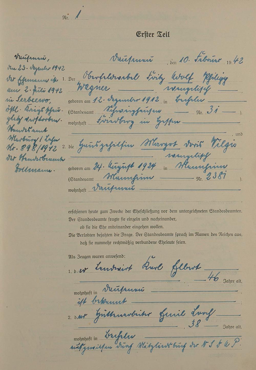 Heiratsregister 1942