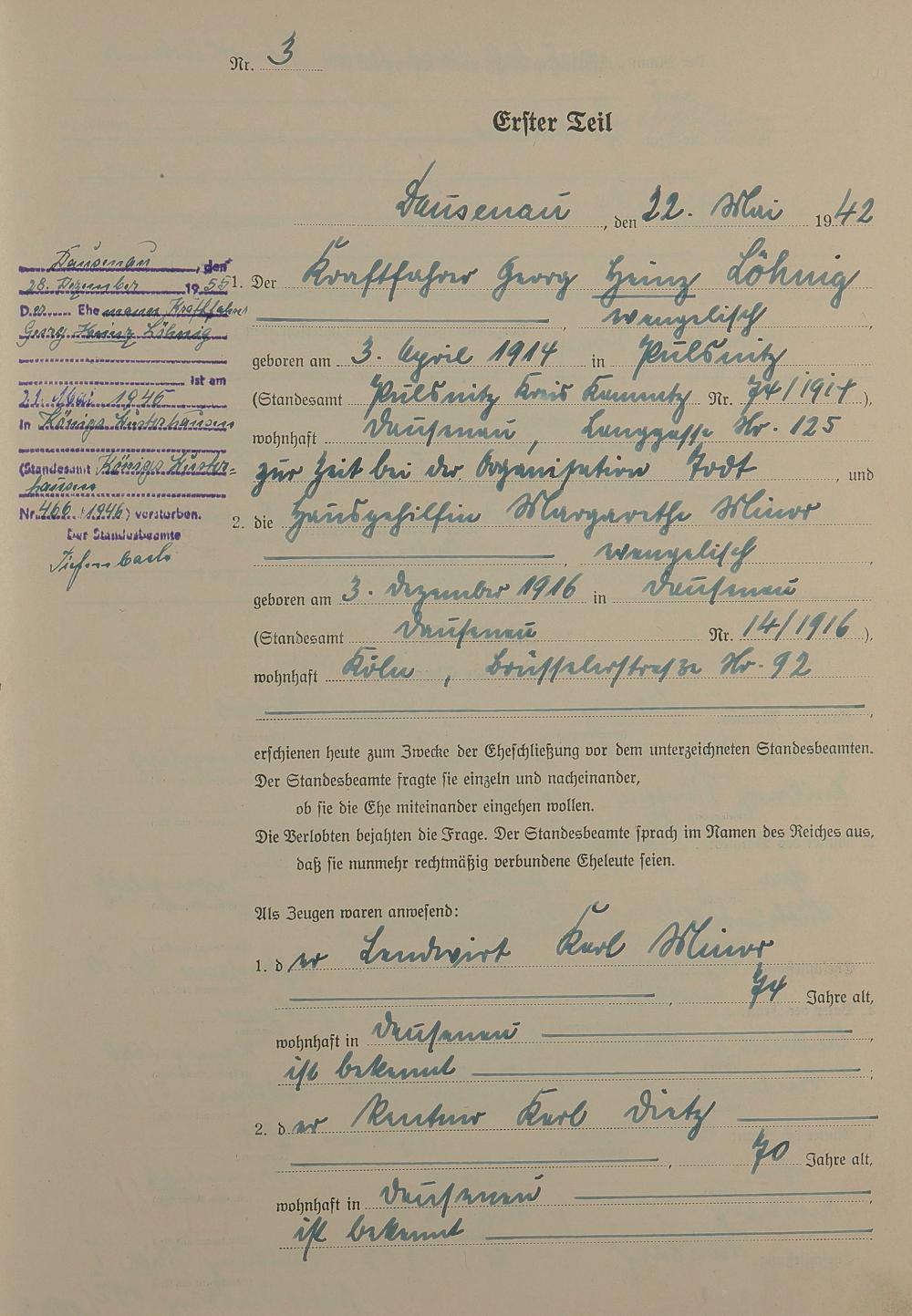 Heiratsregister 1942
