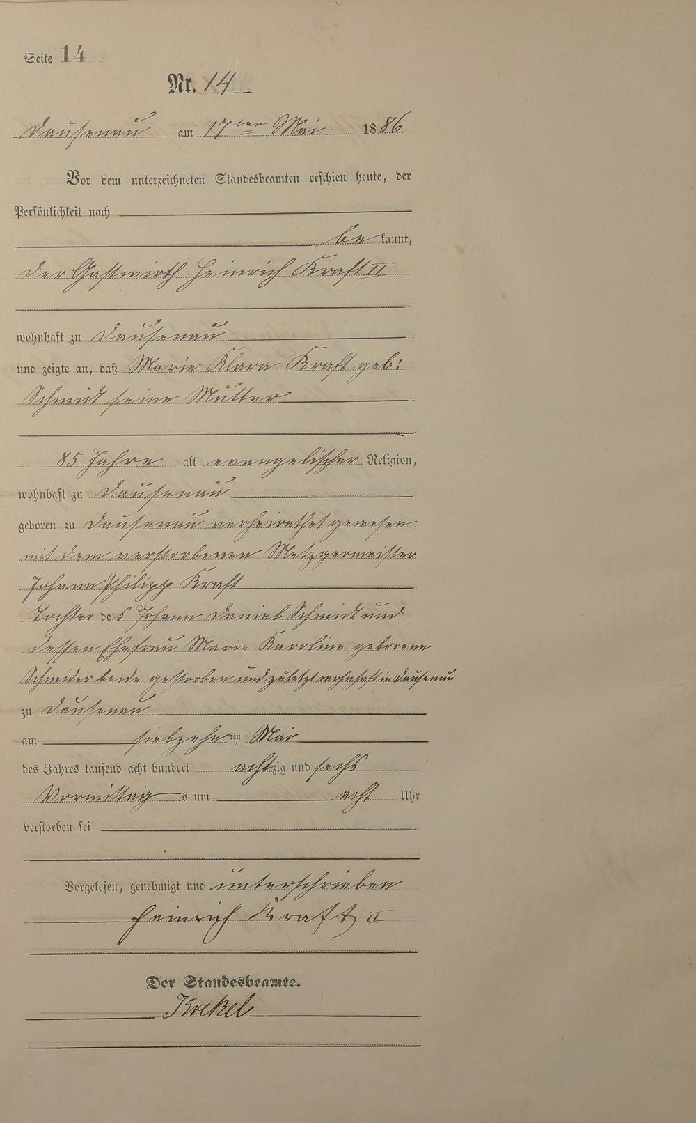 Sterberegister 1886